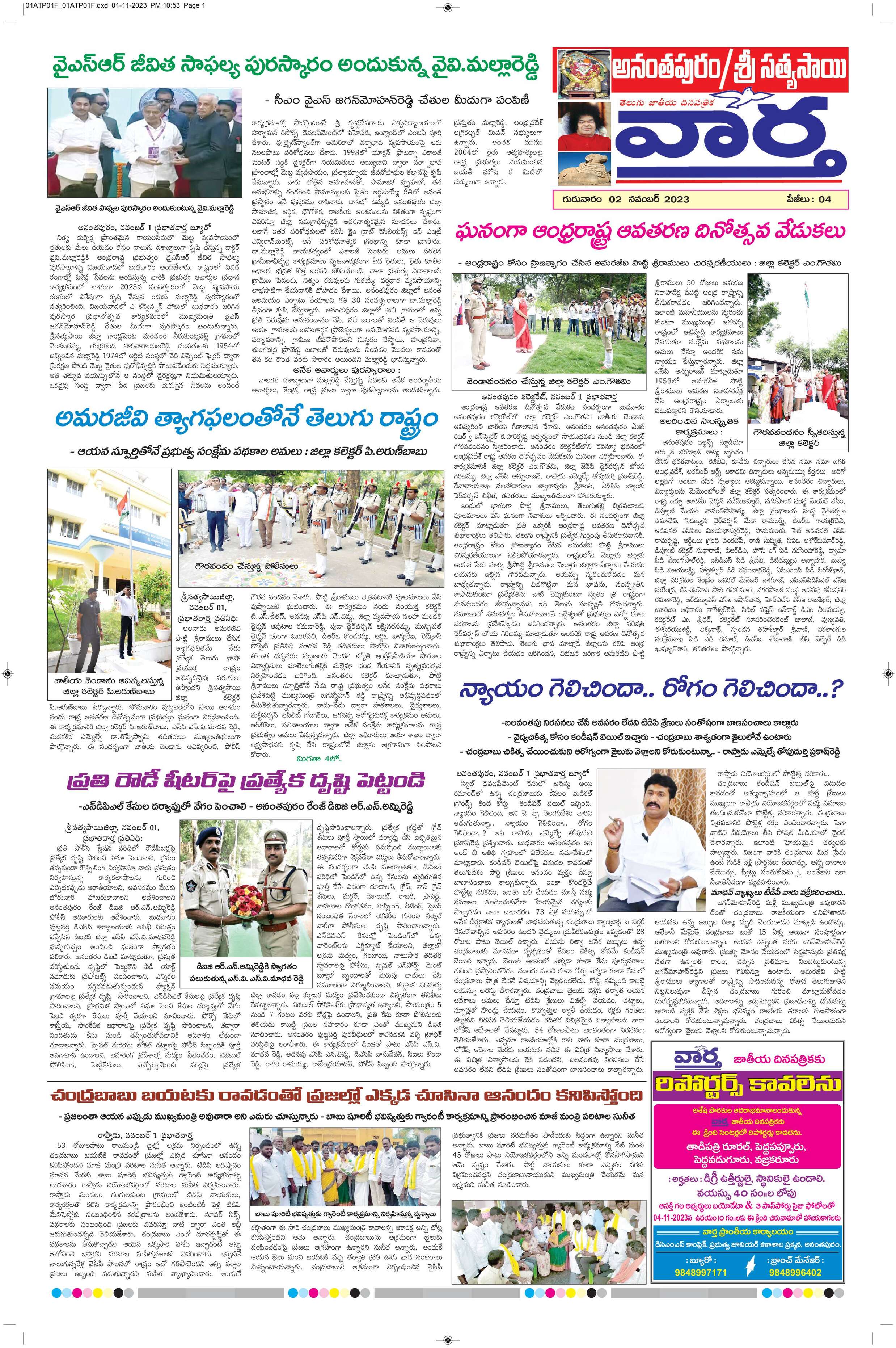 Ananthapur Tab - 02 Nov 2023 - - Page 1