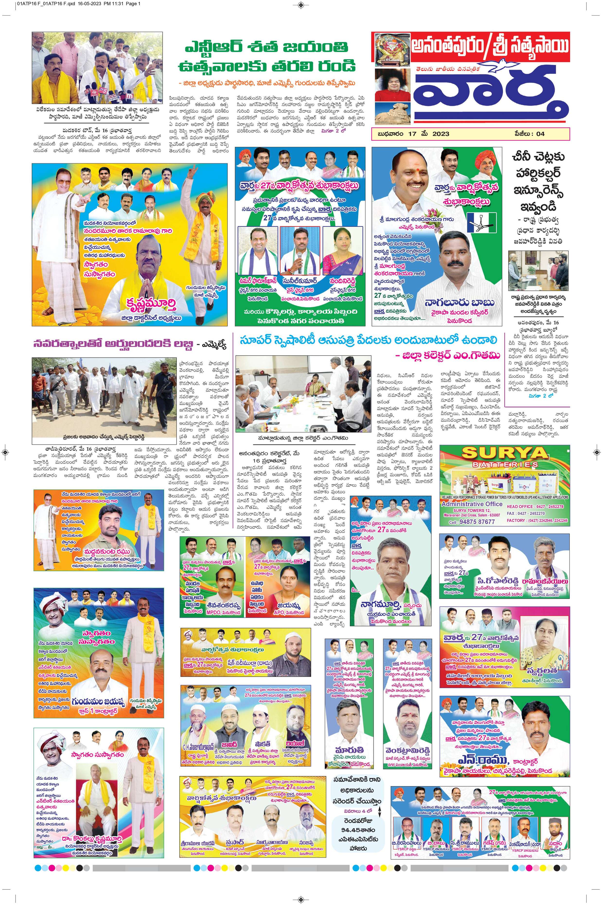 Ananthapur Tab - 17 May 2023 - - Page 1