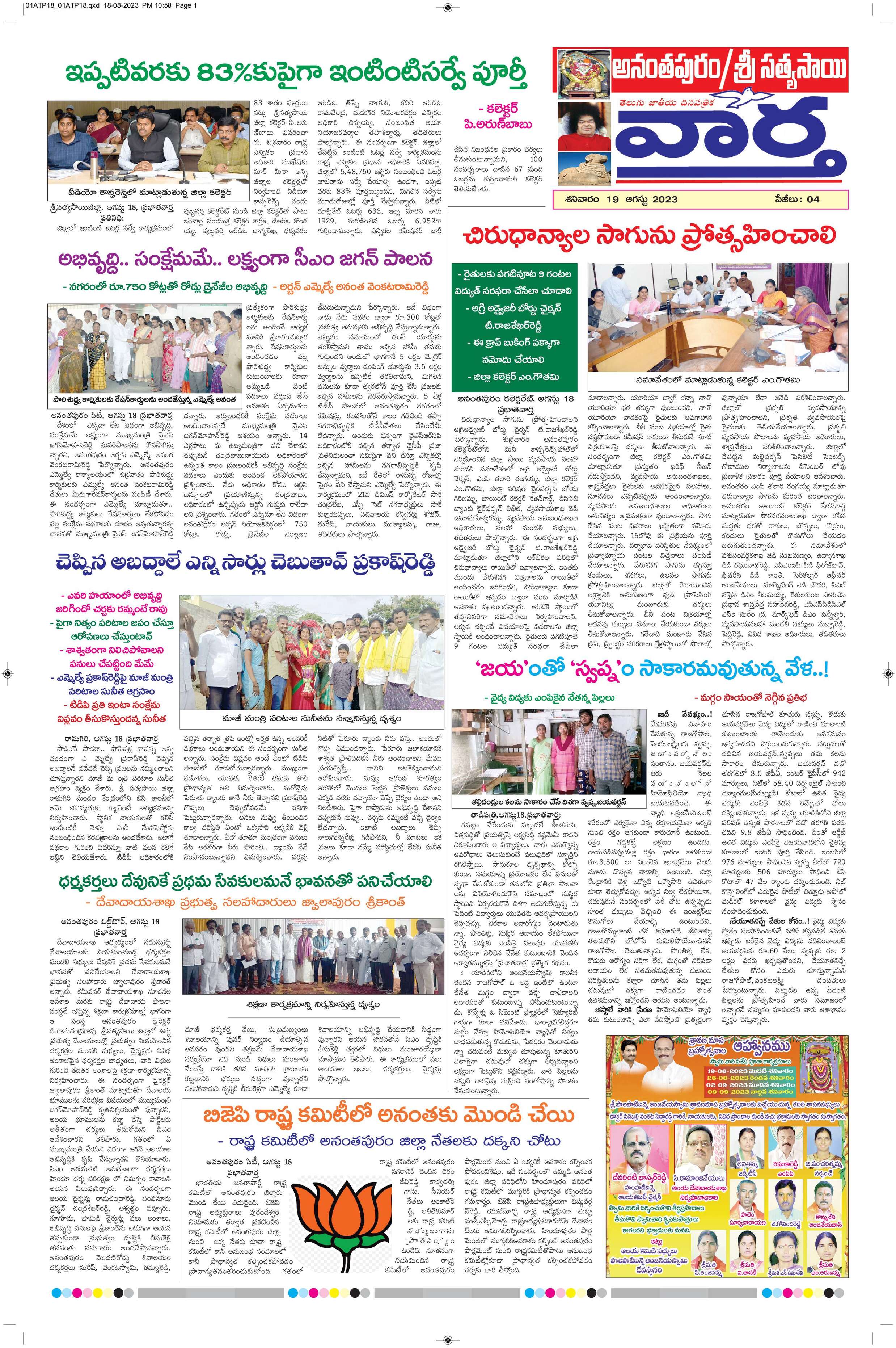 Ananthapur Tab - 19 Aug 2023 - - Page 1