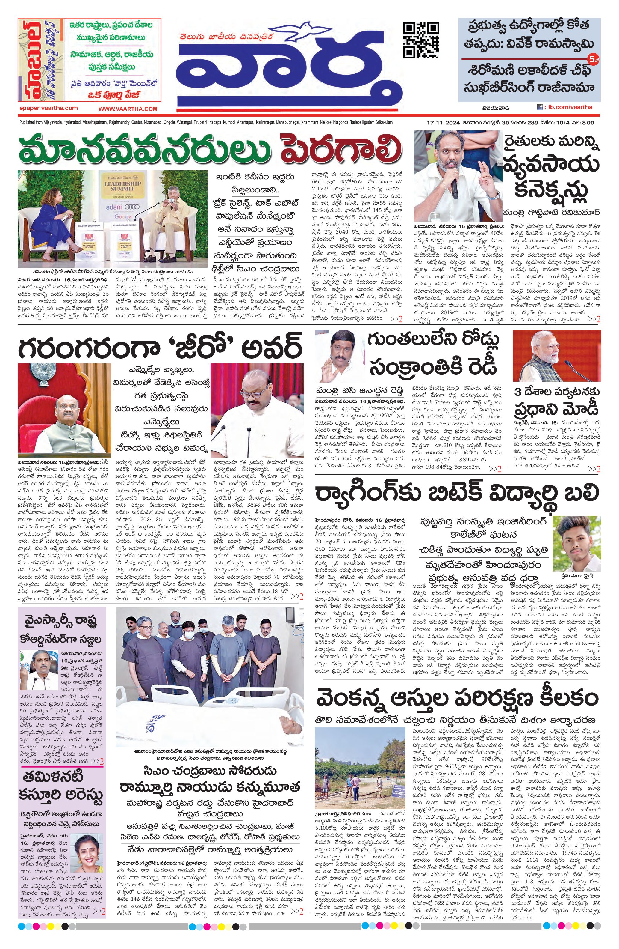 Andhra Pradesh Main - 17 Nov 2024 - - Page 1