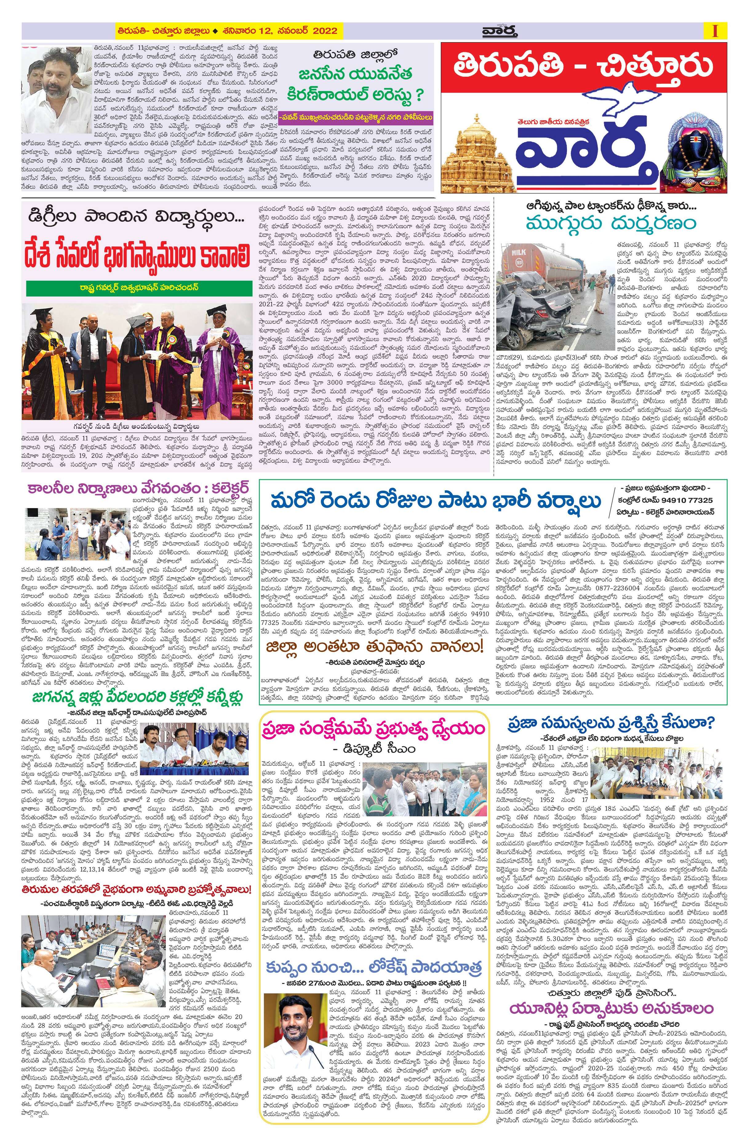 Chittoor main - 12 Nov 2022 - - Page 1