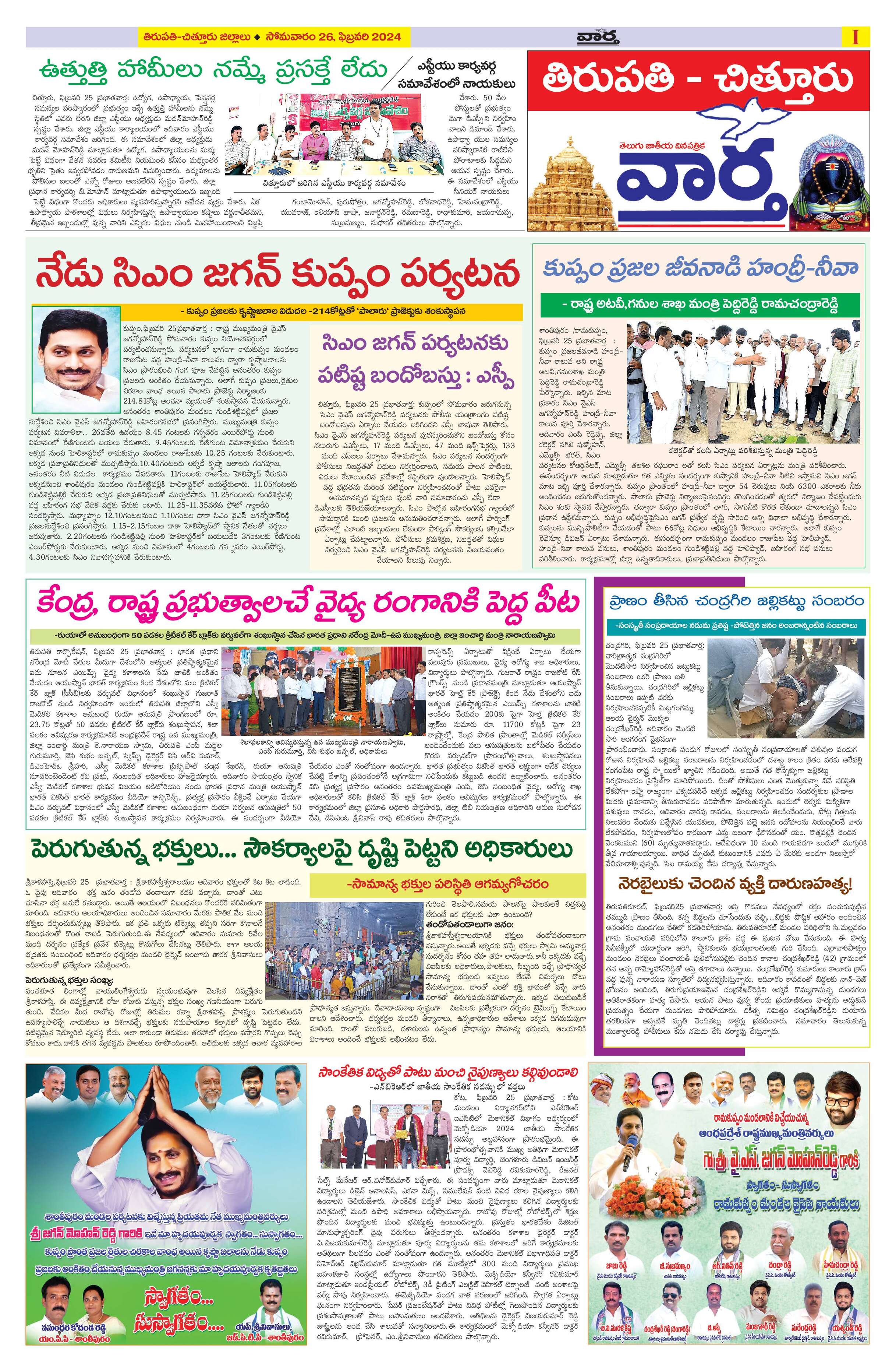 Chittoor main - 26 Feb 2024 - - Page 1