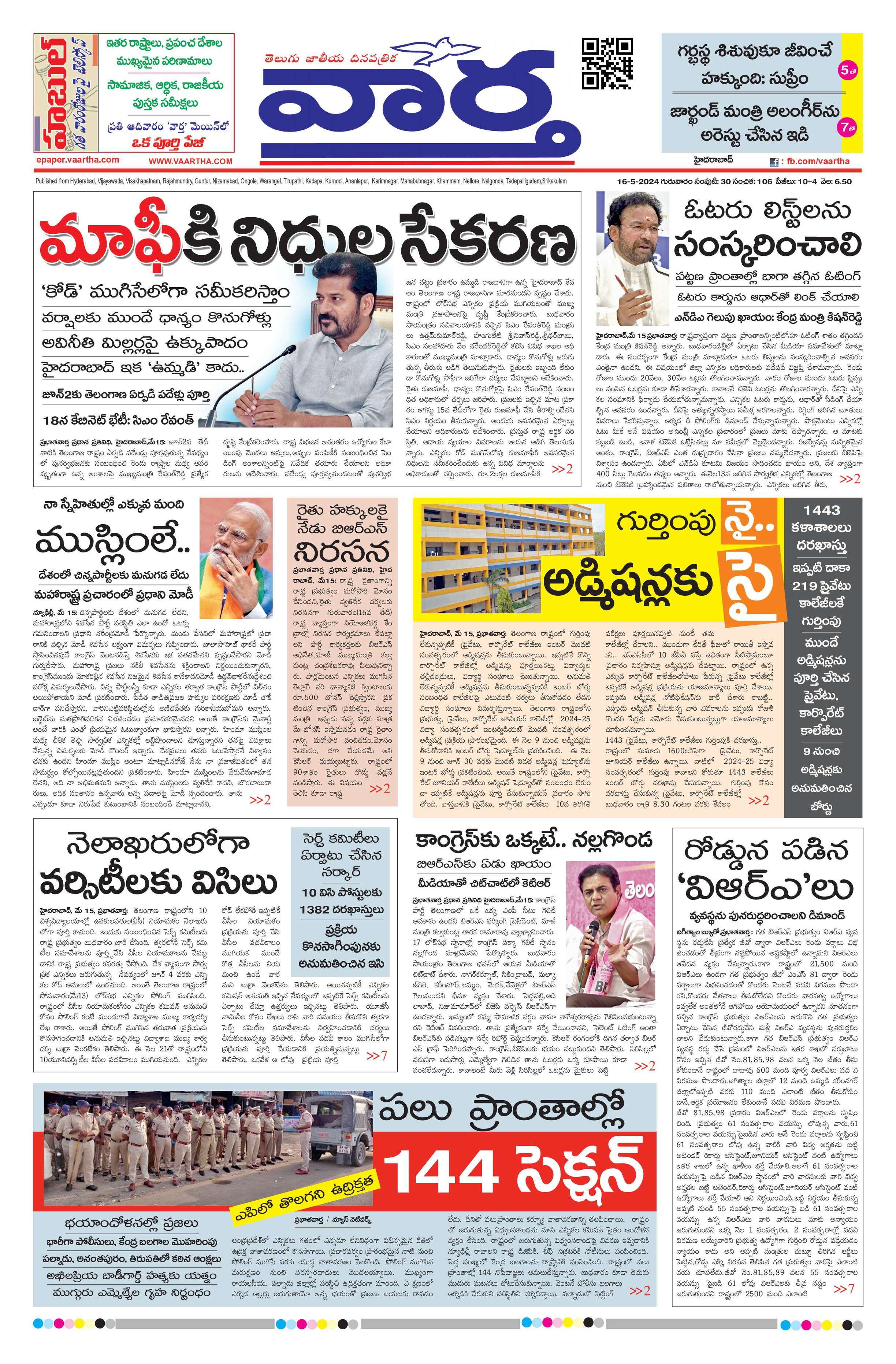 Hyderabad Main - 16 May 2024 - - Page 1