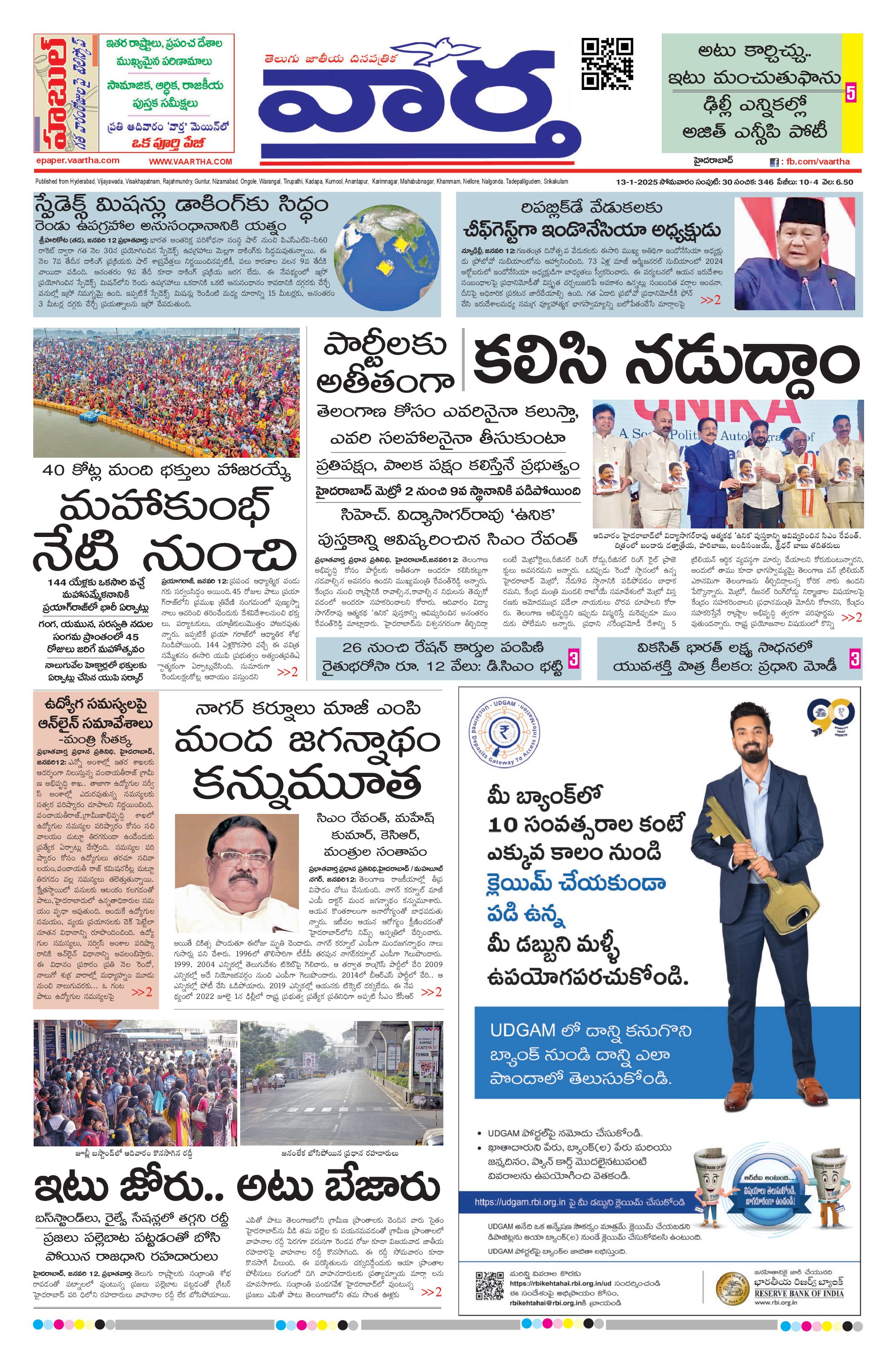 Hyderabad Main - 13 Jan 2025 - - Page 1
