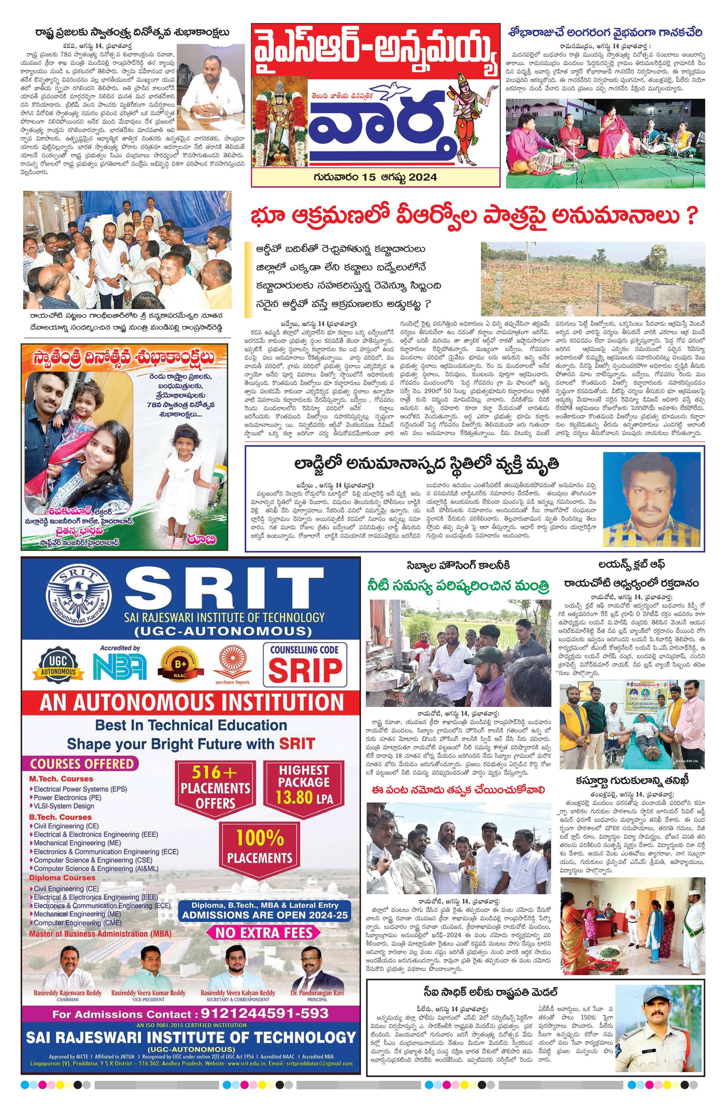 Kadapa main - 15 Aug 2024 - - Page 1