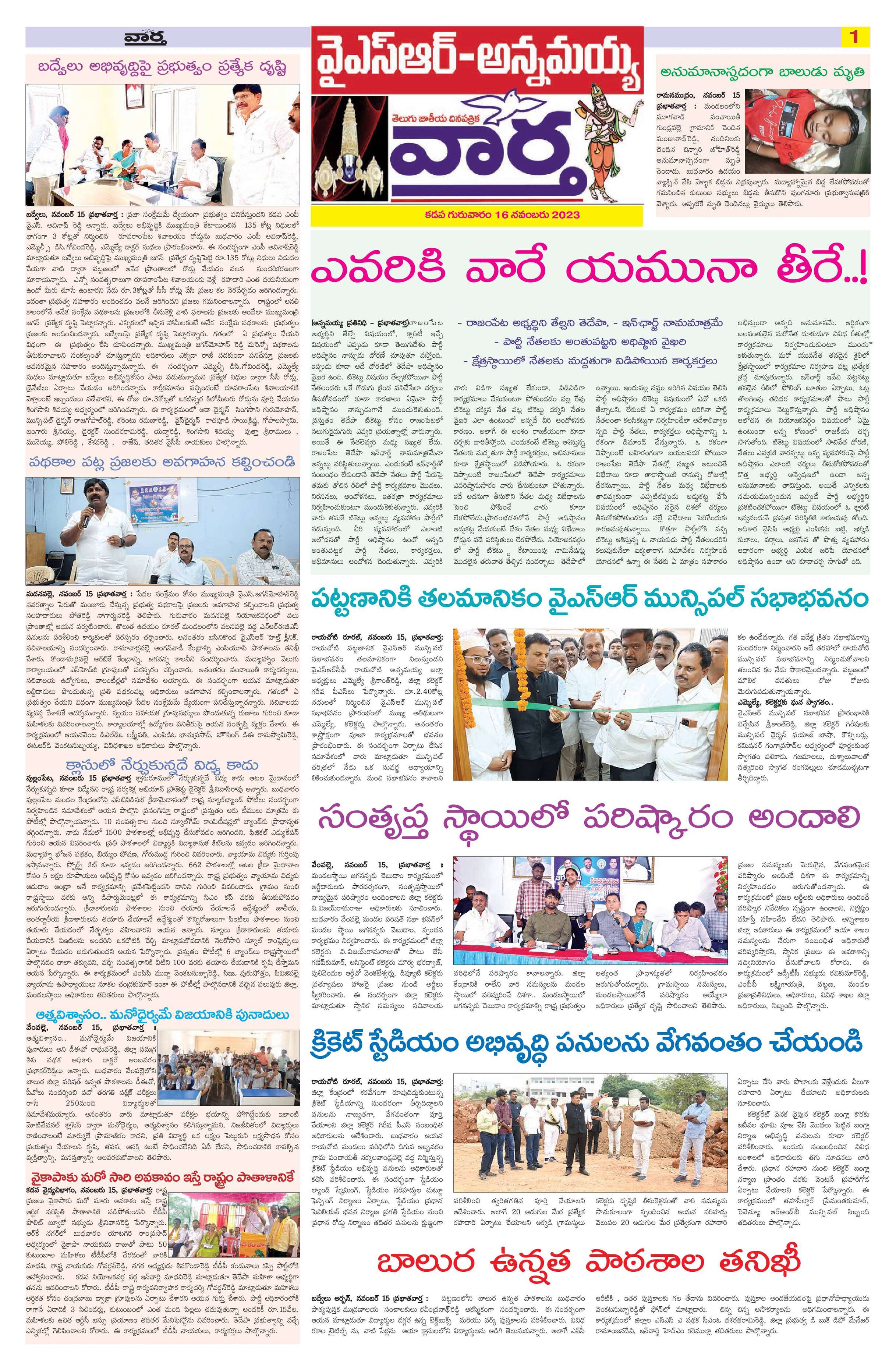 Kadapa main - 16 Nov 2023 - - Page 1