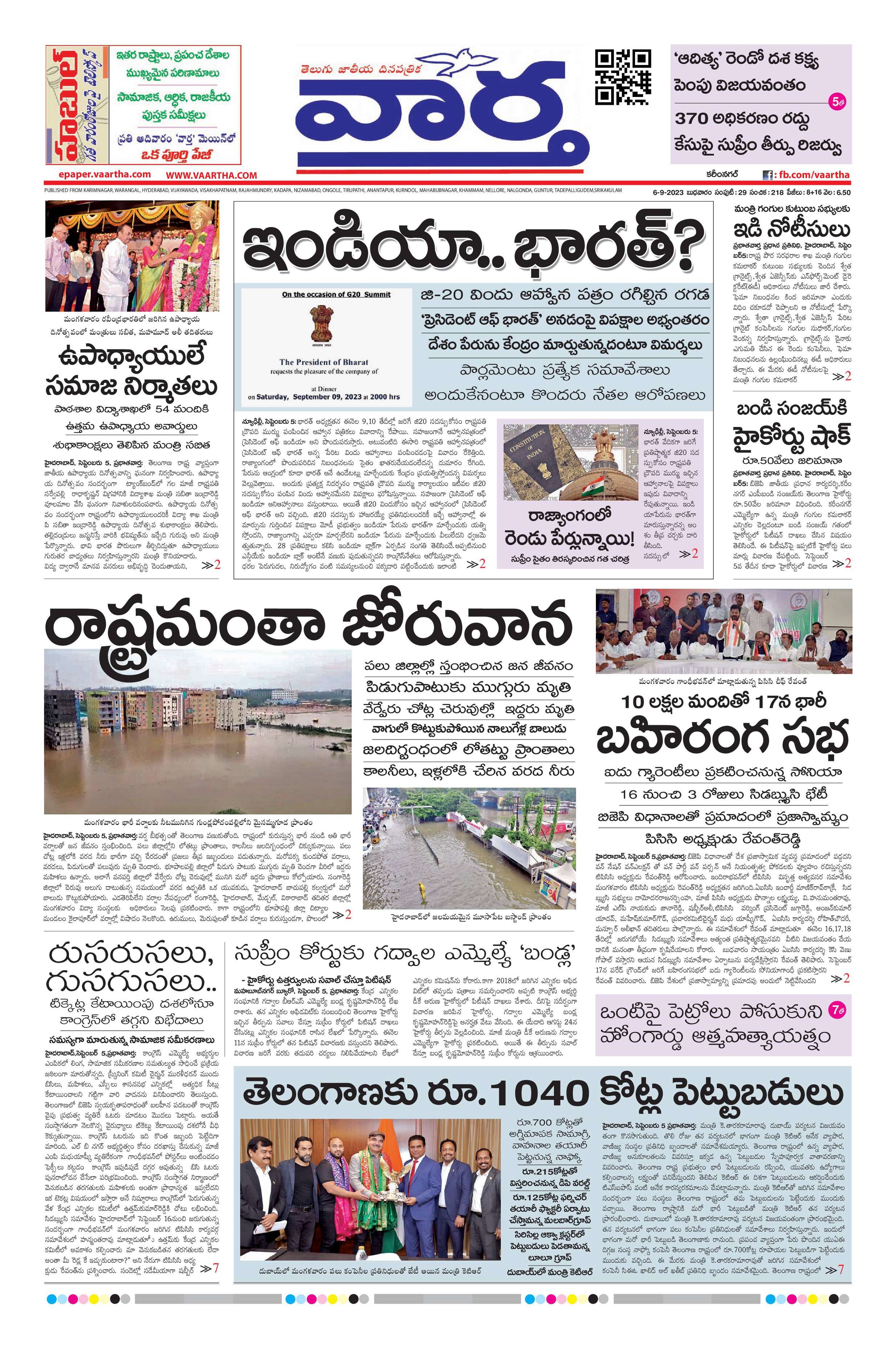 Karimnagar Main - 06 Sep 2023 - - Page 1