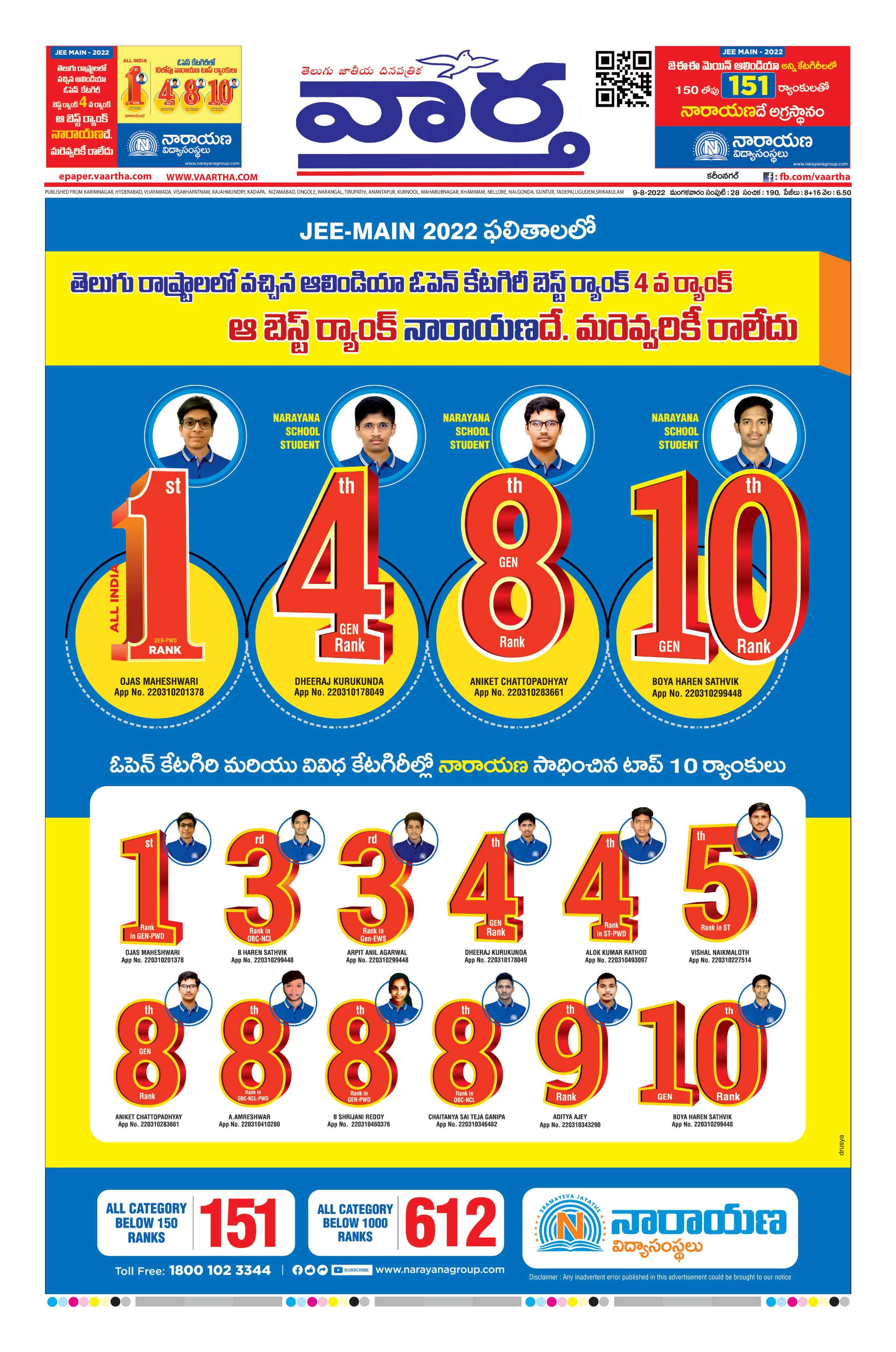 Karimnagar Main - 09 Aug 2022 - - Page 1