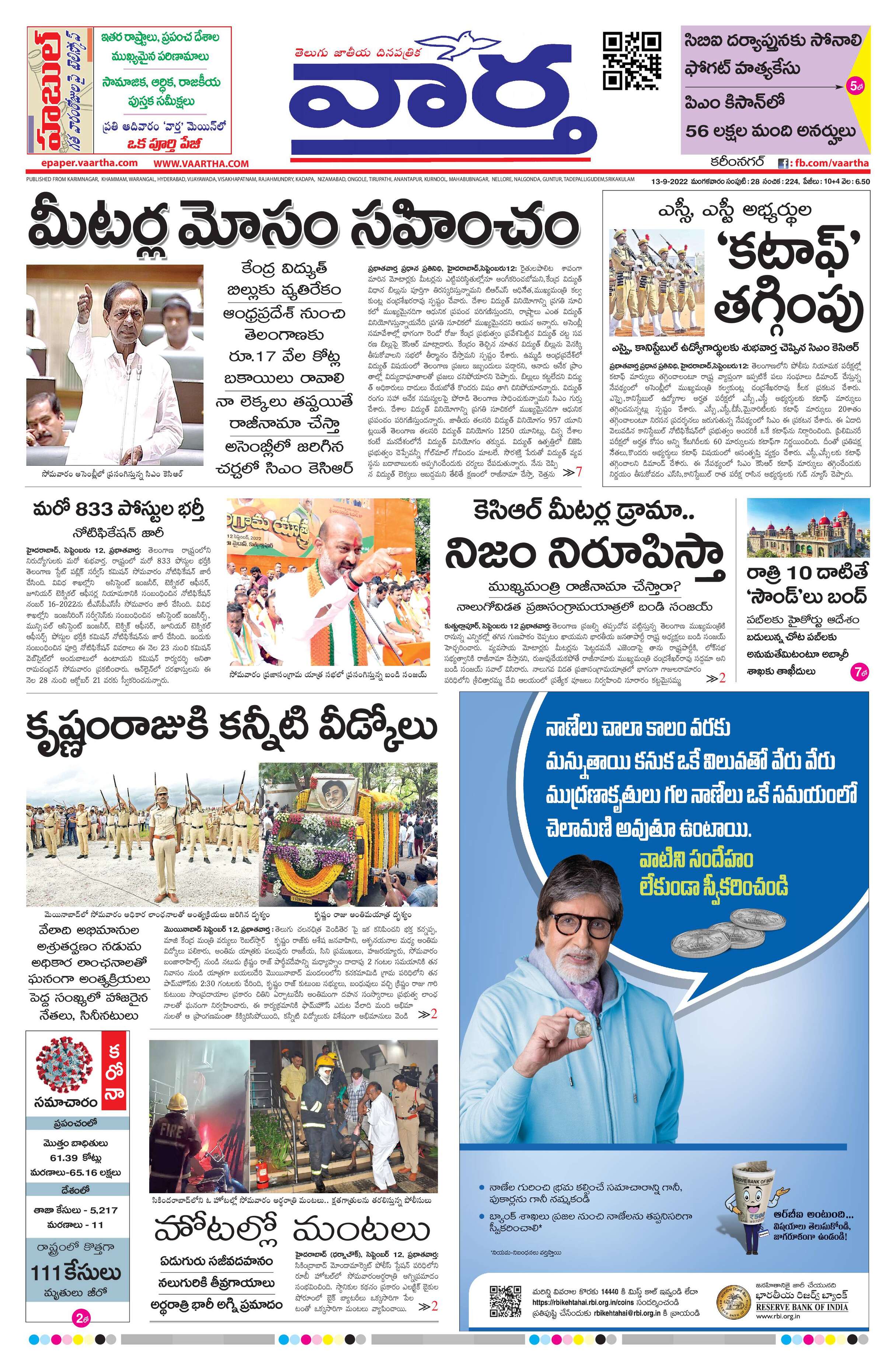 Karimnagar Main - 13 Sep 2022 - - Page 1