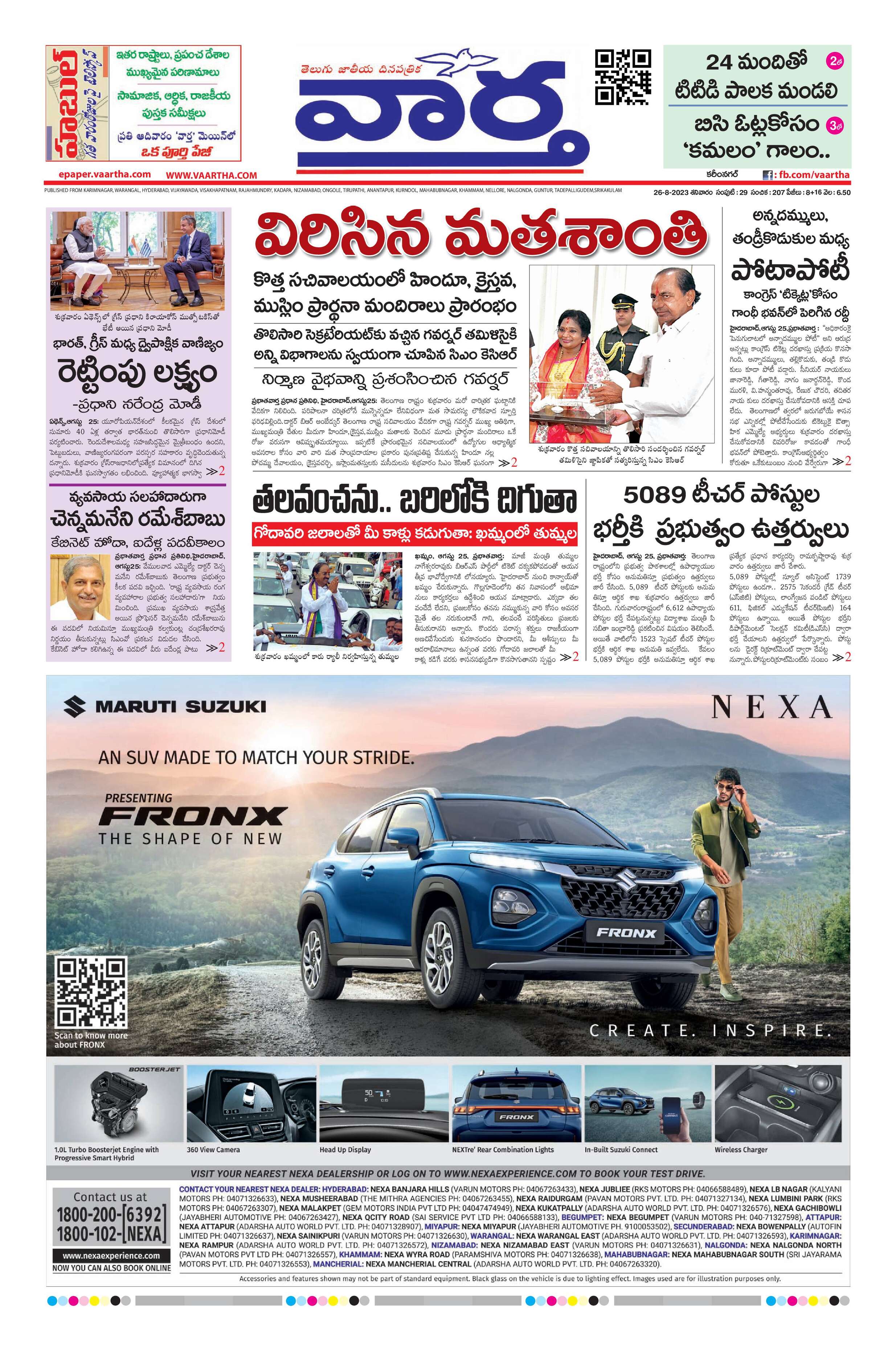 Karimnagar Main - 26 Aug 2023 - - Page 1