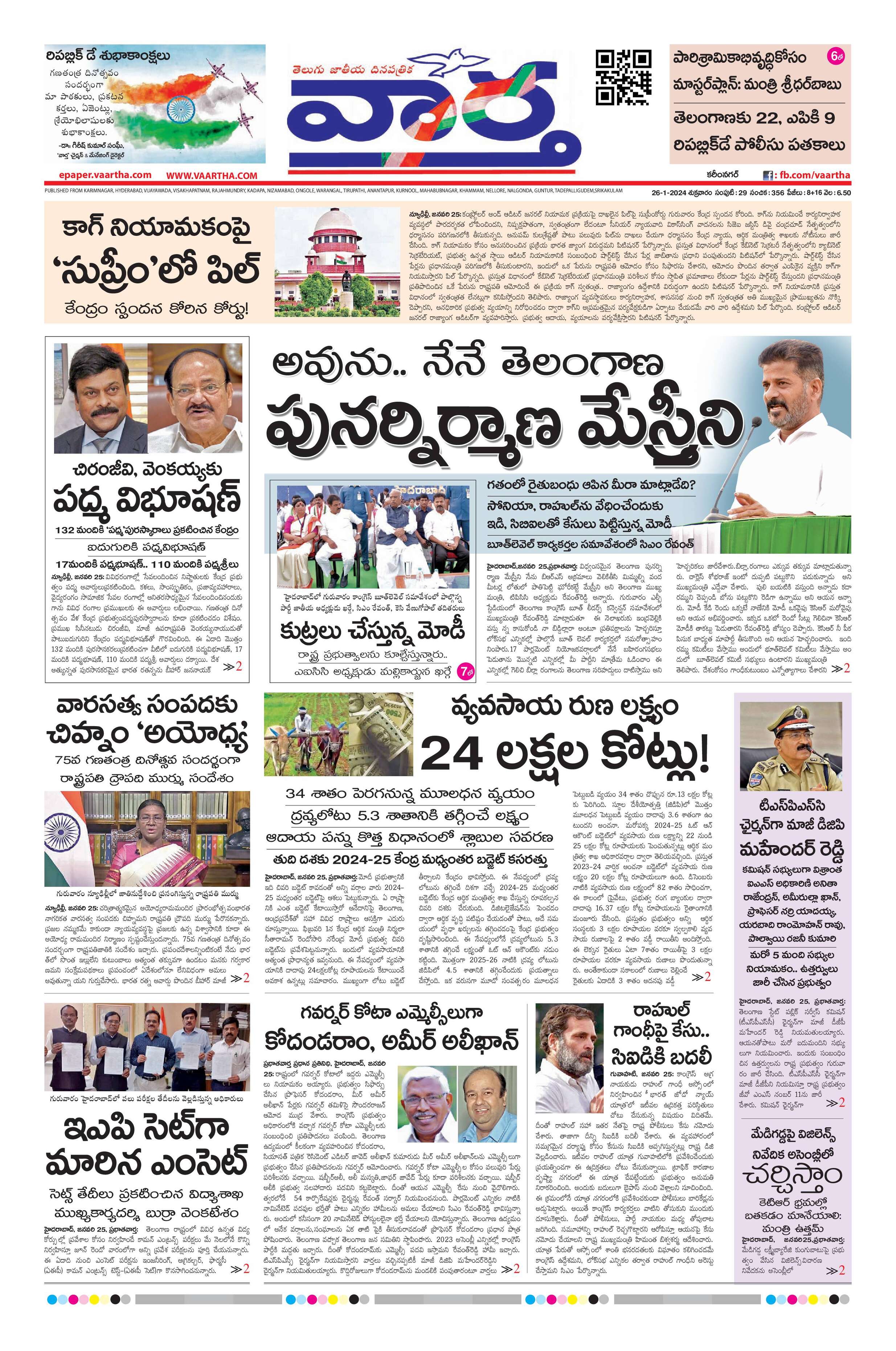 Karimnagar Main - 26 Jan 2024 - - Page 1