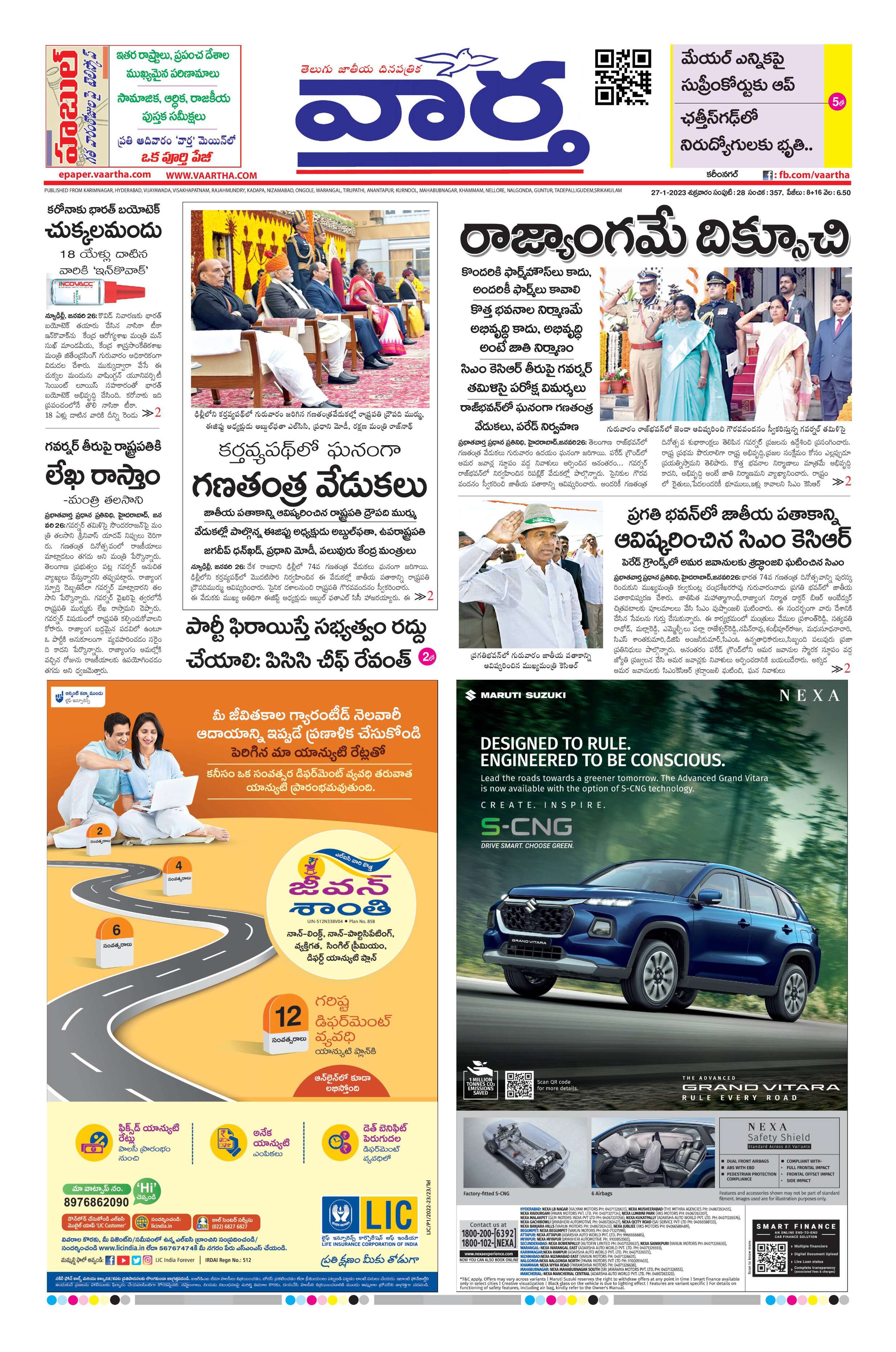 Karimnagar Main - 27 Jan 2023 - - Page 1
