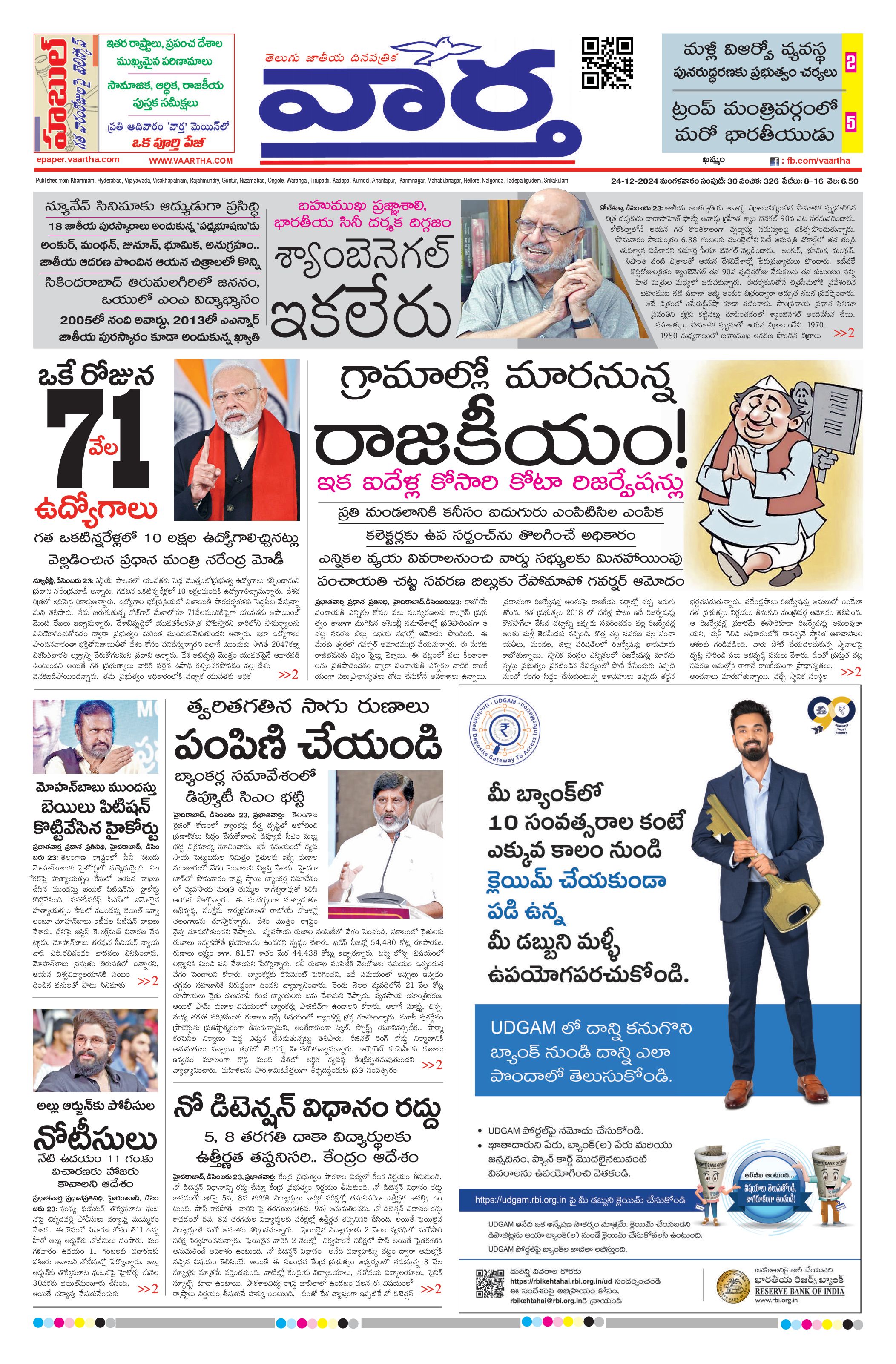 Khammam Main - 24 Dec 2024 - - Page 1