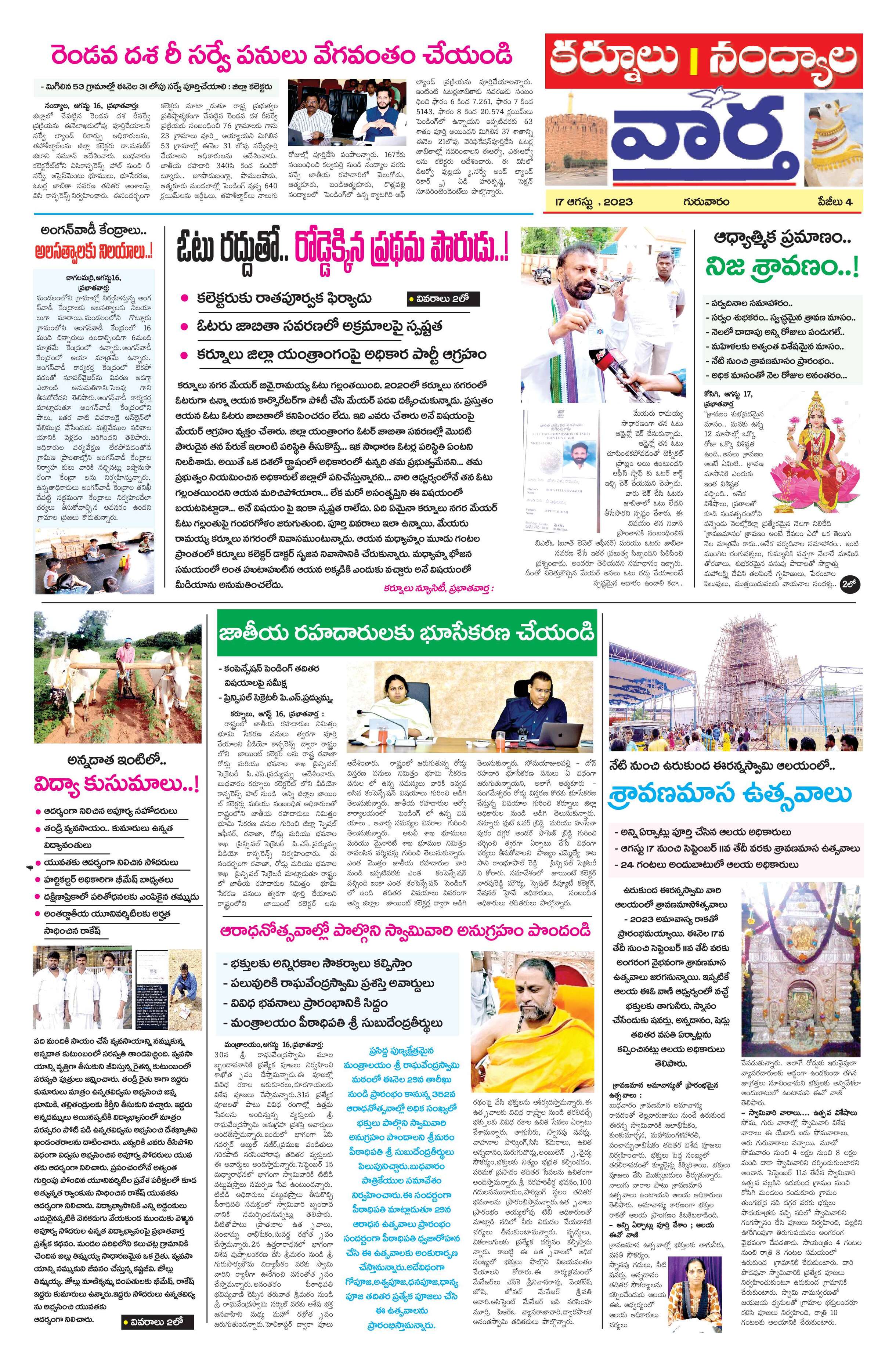 Kurnool Tab - 17 Aug 2023 - - Page 1