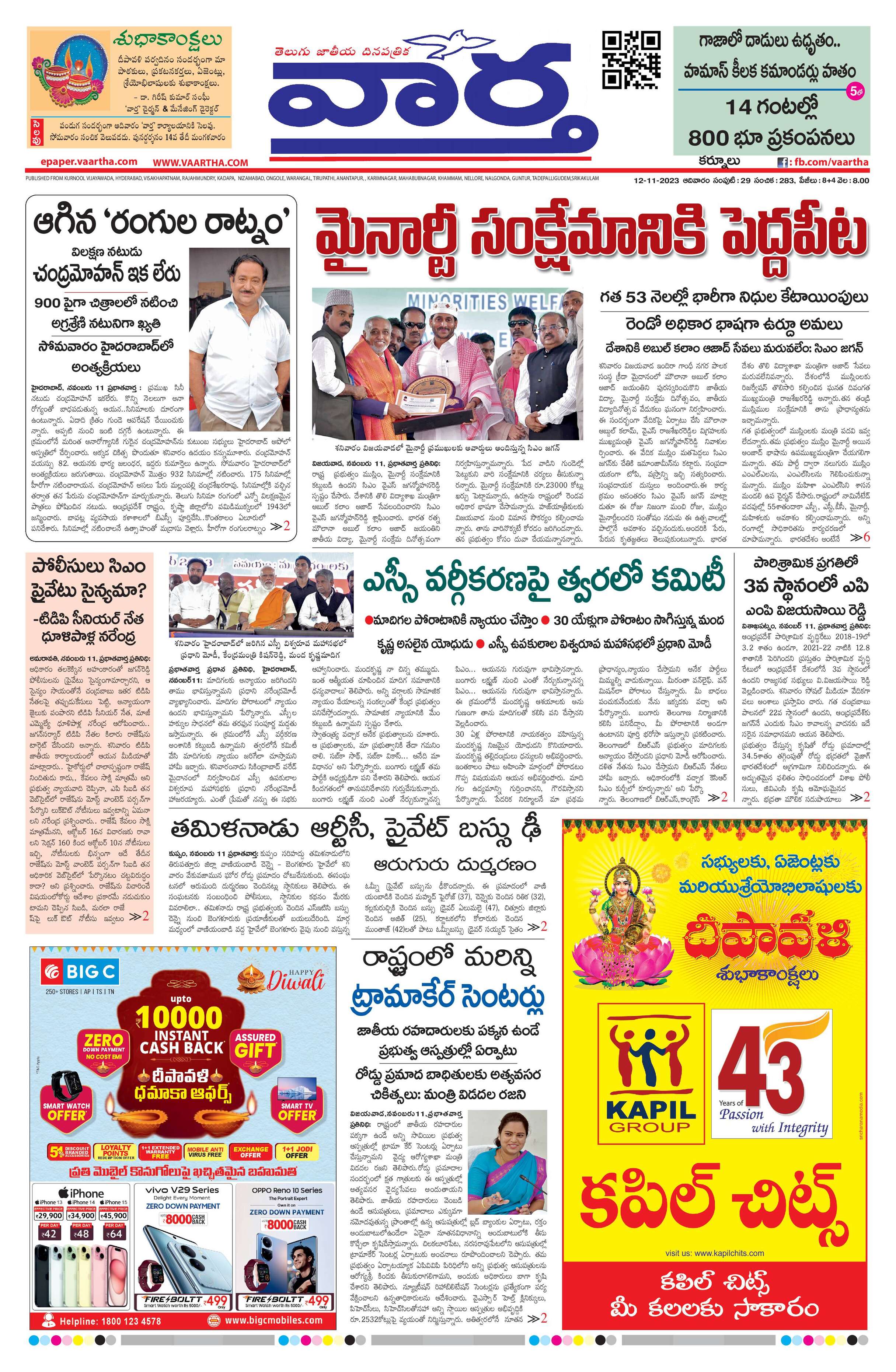 Kurnool main - 12 Nov 2023 - - Page 1