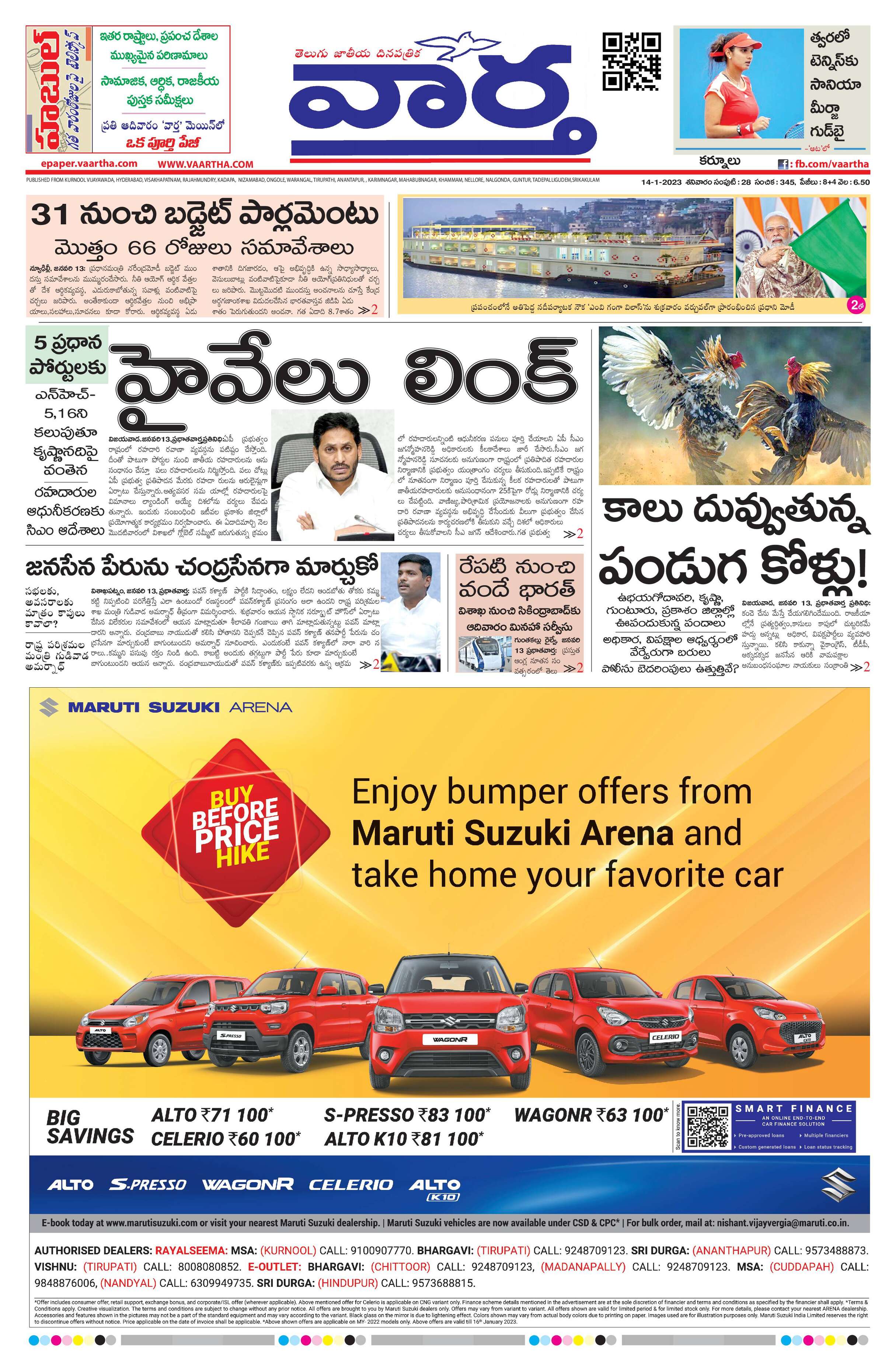 Kurnool main - 14 Jan 2023 - - Page 1