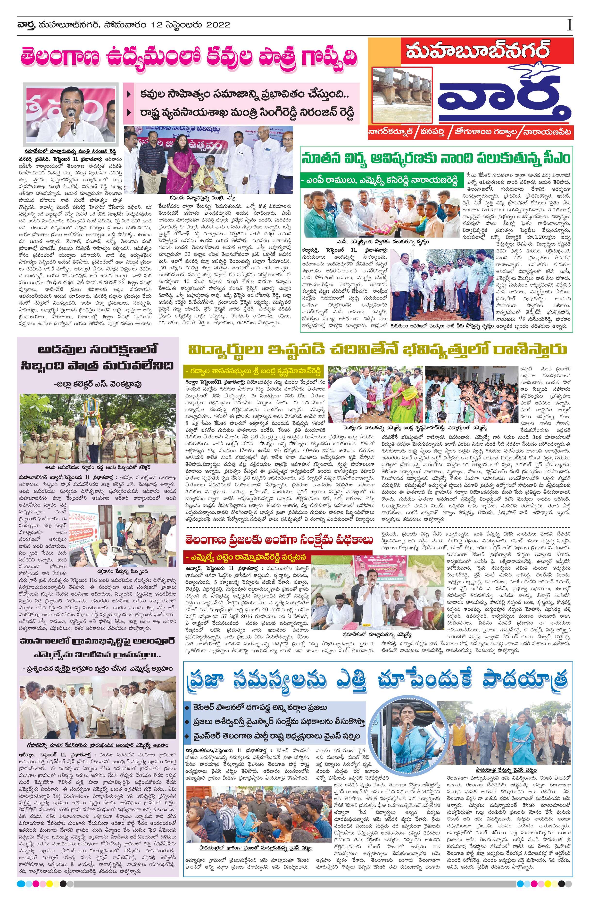 Mahaboobnagar Tab - 12 Sep 2022 - - Page 1