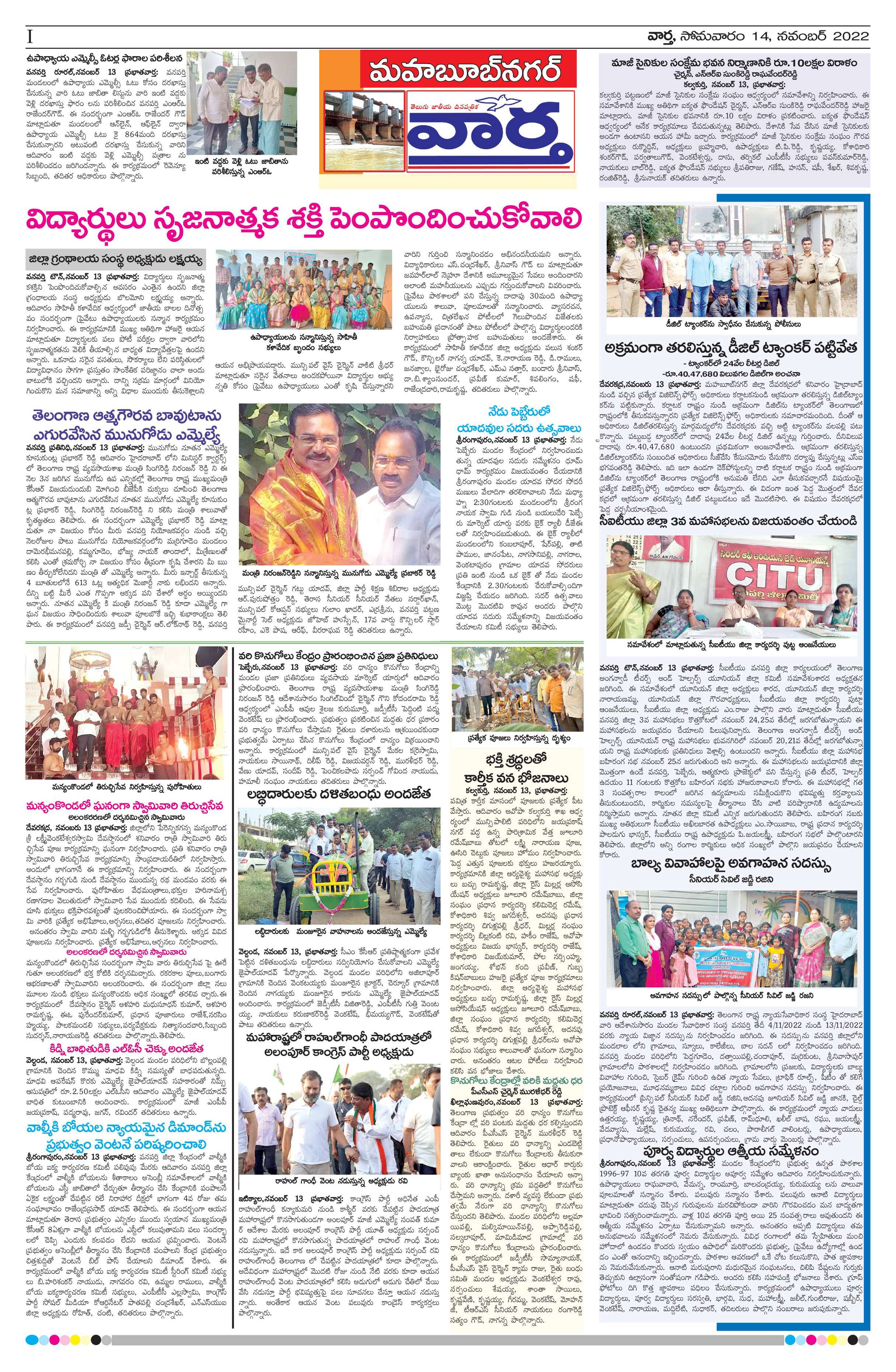 Mahaboobnagar Tab - 14 Nov 2022 - - Page 1