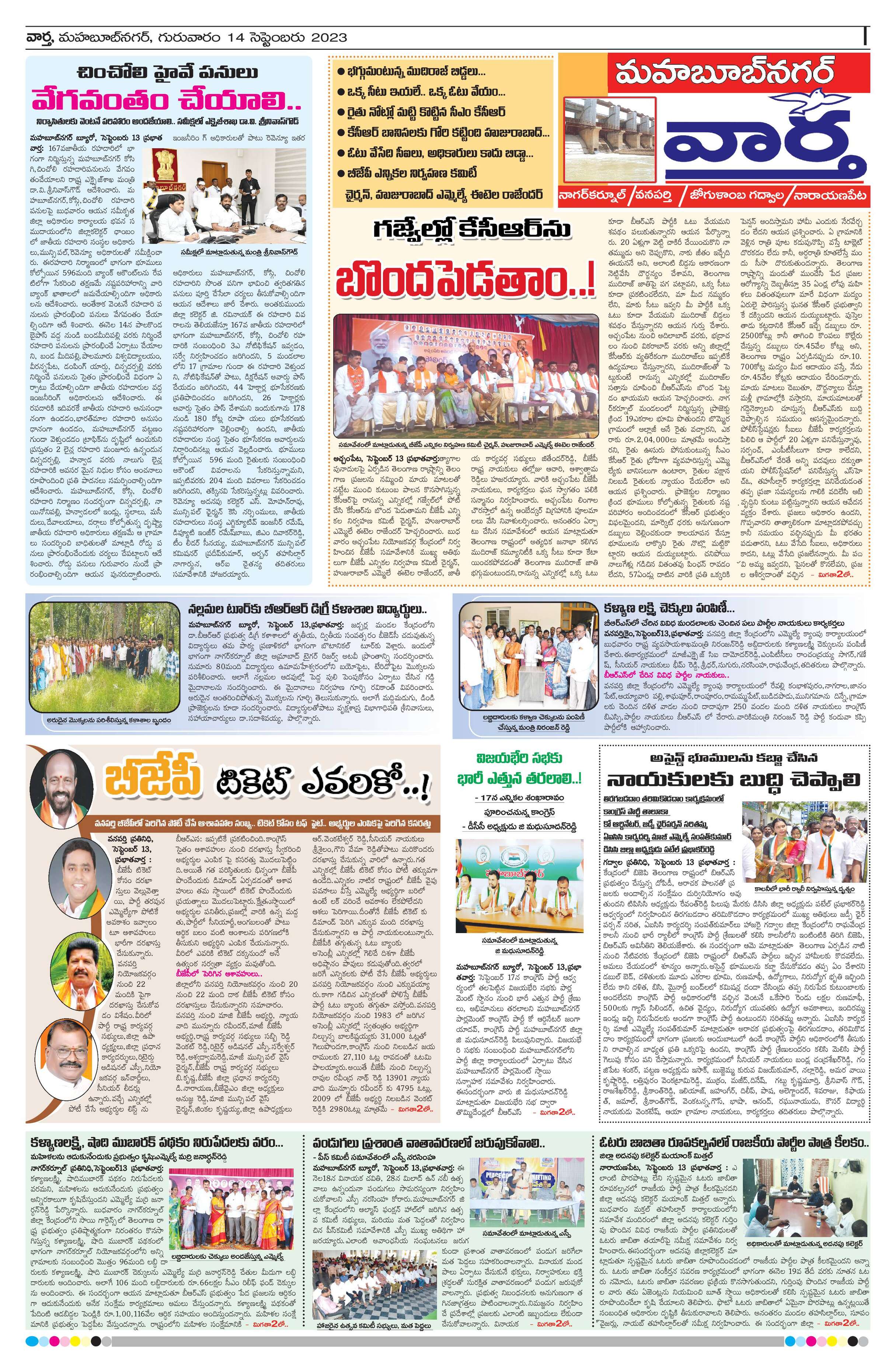 Mahaboobnagar Tab - 14 Sep 2023 - - Page 1