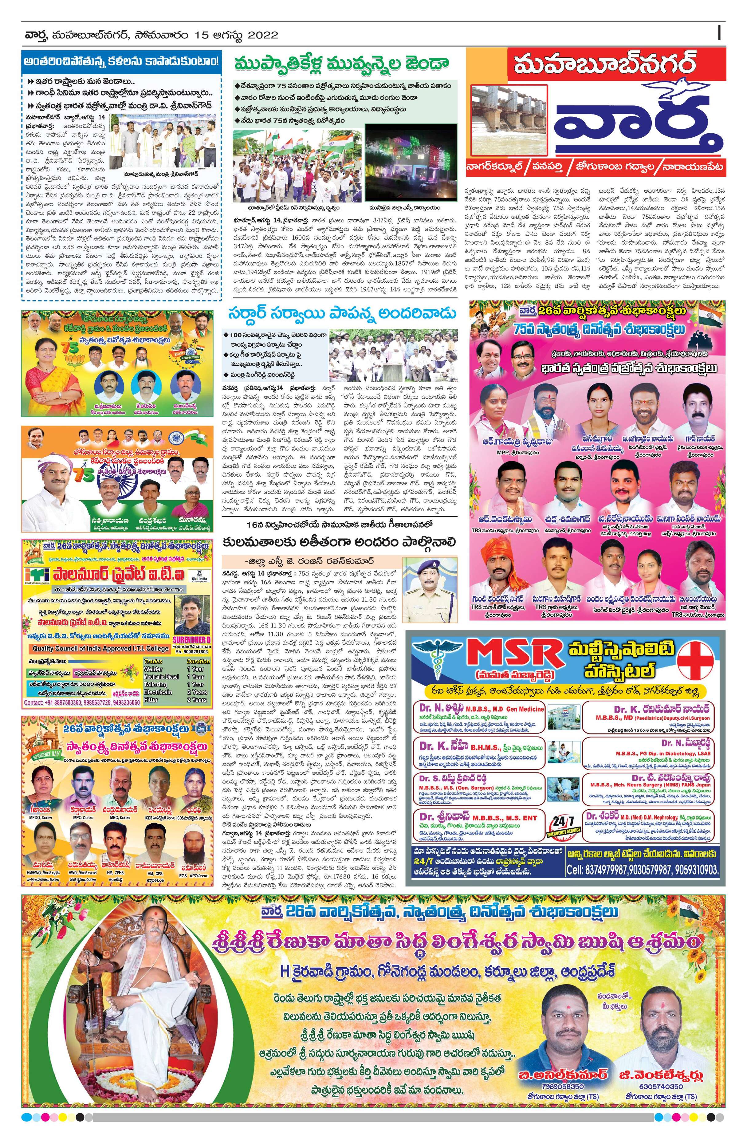 Mahaboobnagar Tab - 15 Aug 2022 - - Page 1