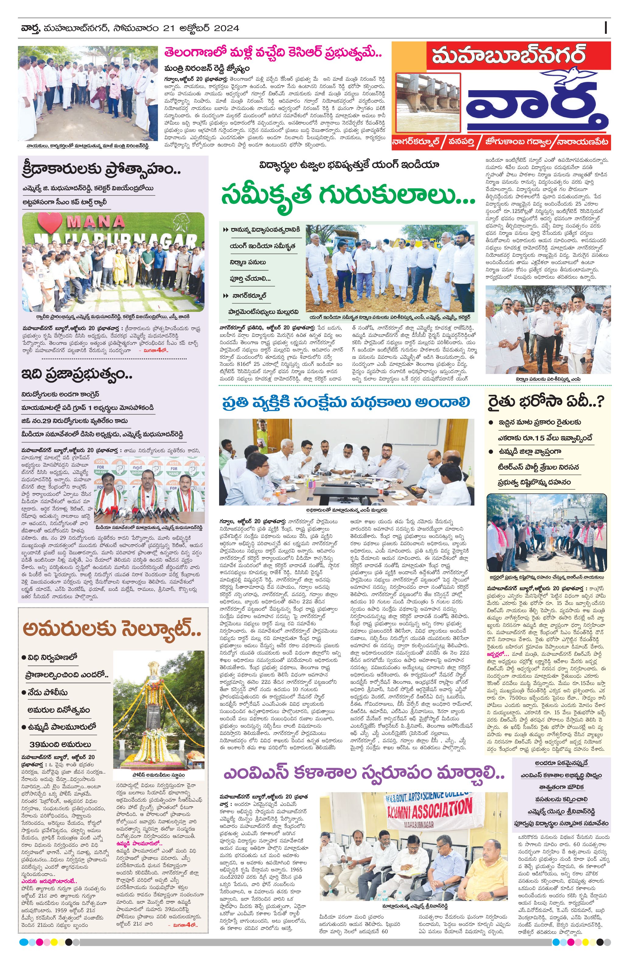 Mahaboobnagar Tab - 21 Oct 2024 - - Page 1