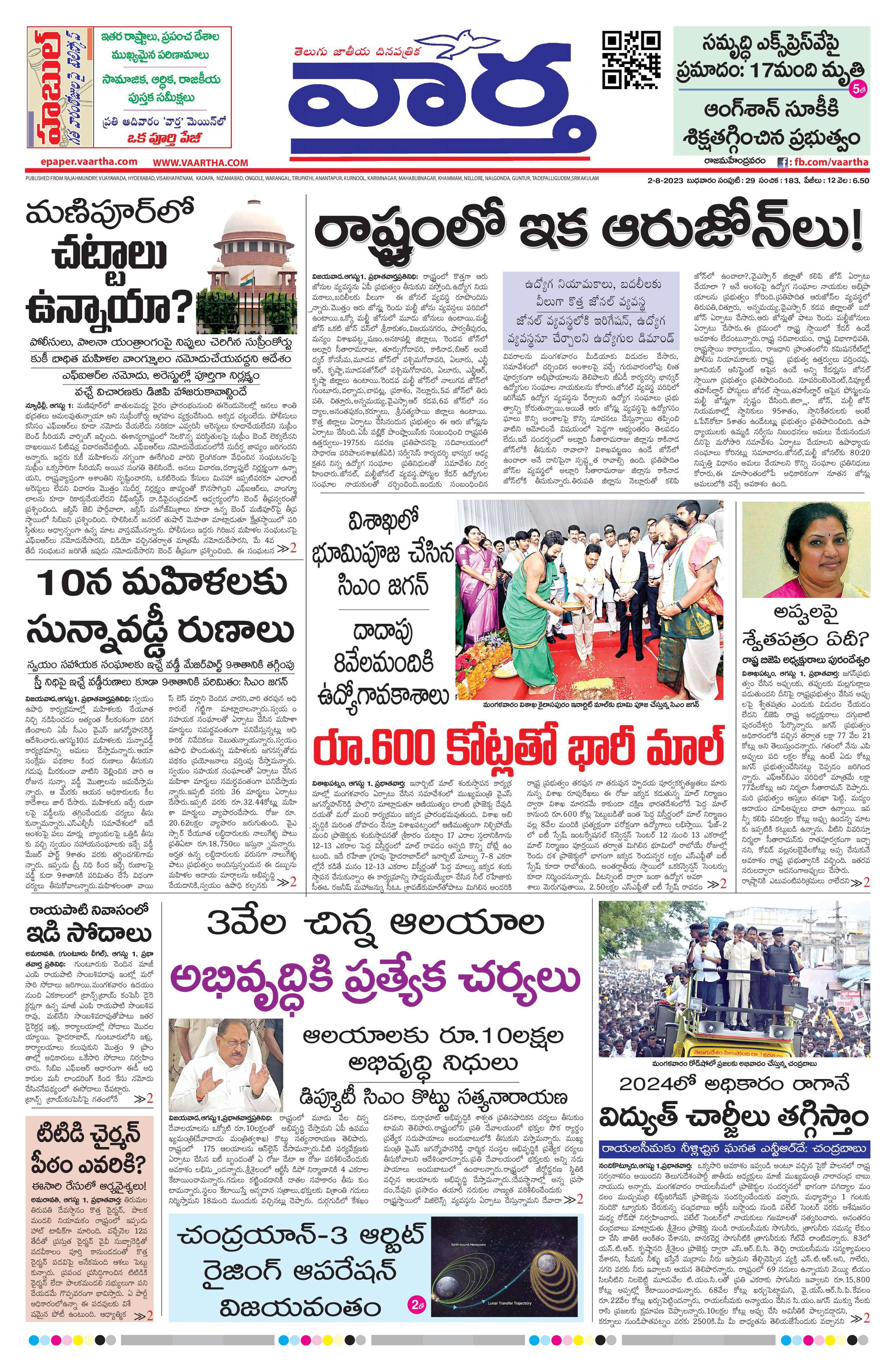 Rajamahendravaram main - 02 Aug 2023 - - Page 1
