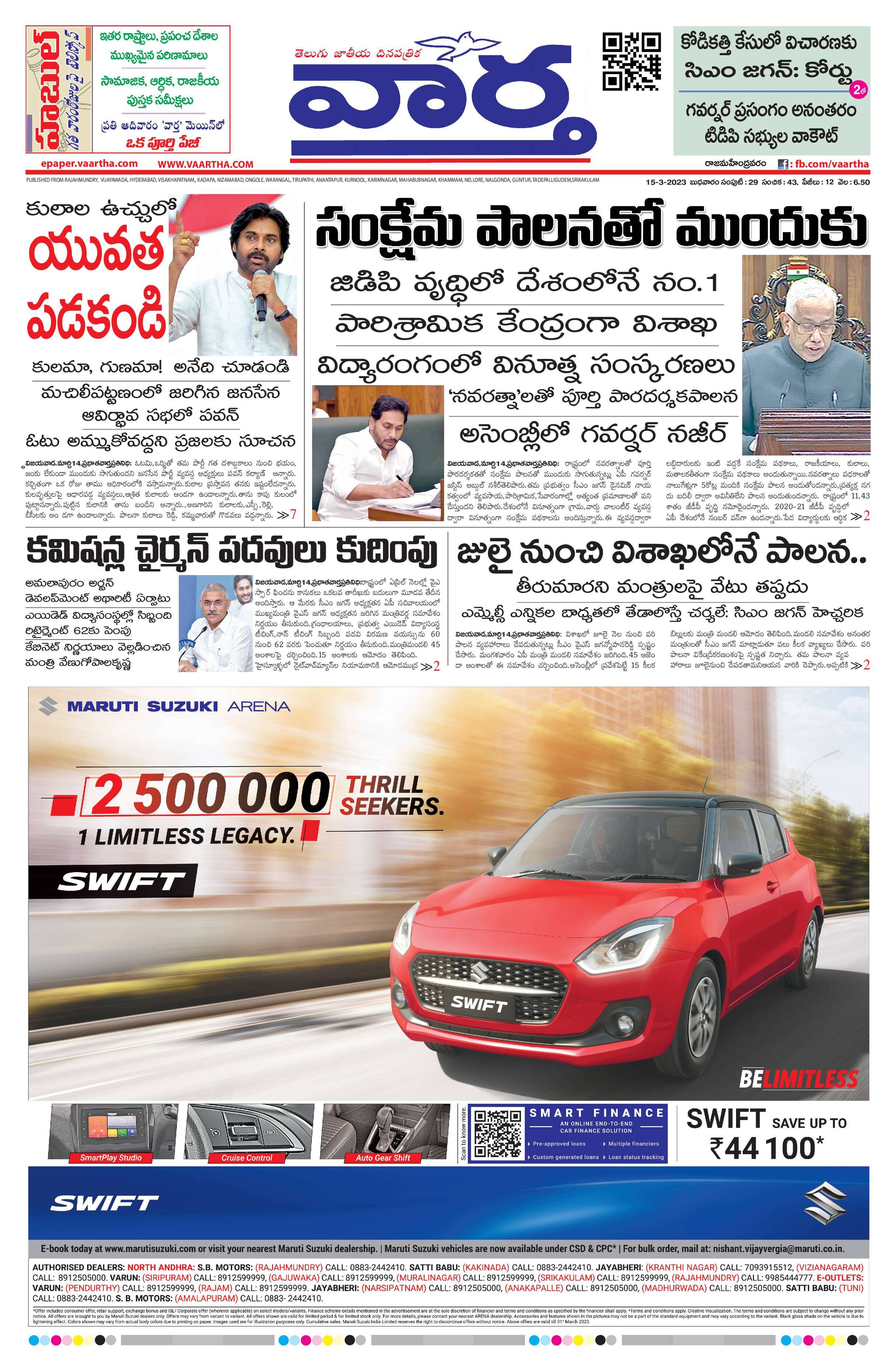 Rajamahendravaram main - 15 Mar 2023 - - Page 1