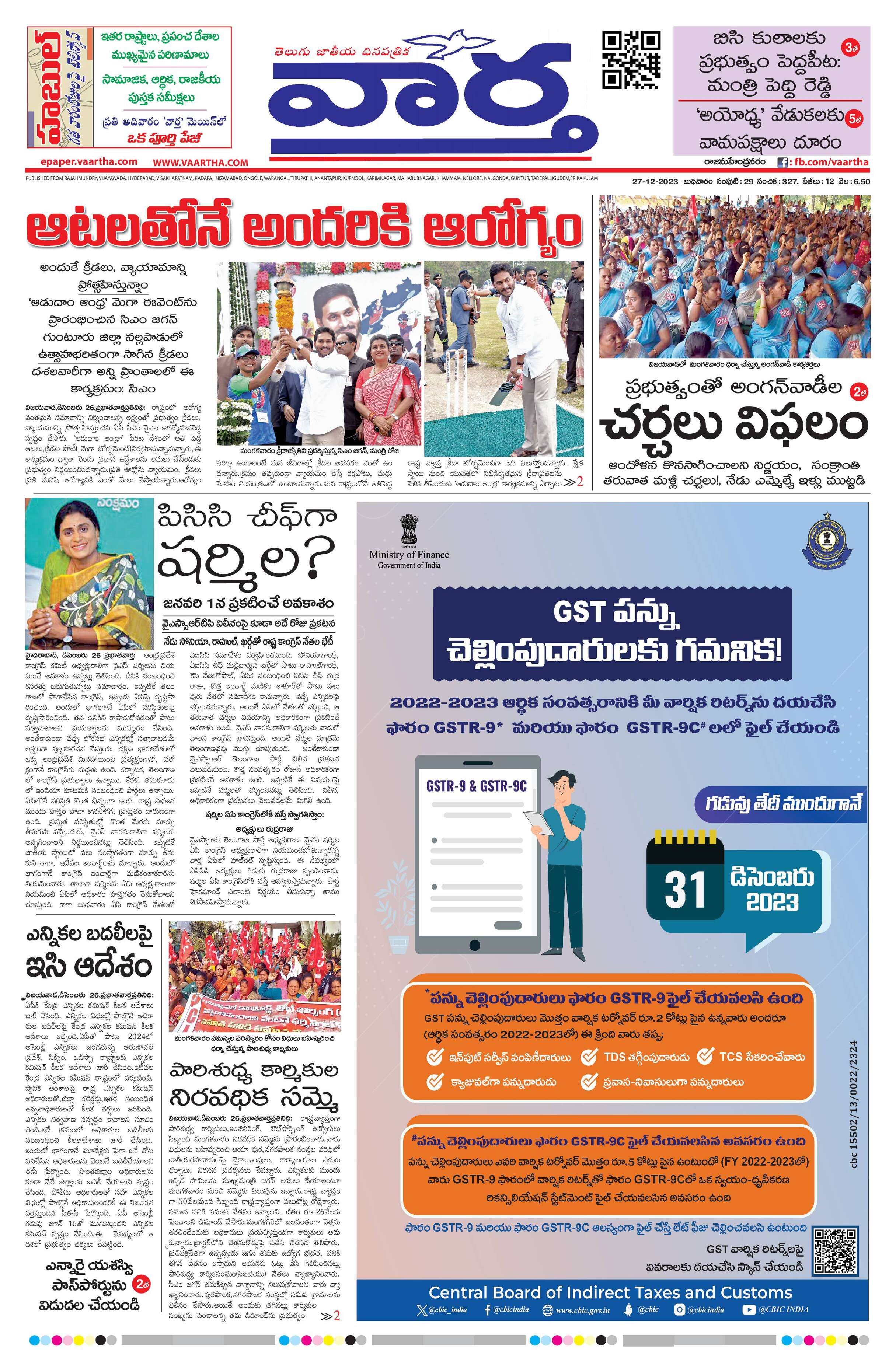 Rajamahendravaram main - 27 Dec 2023 - - Page 1