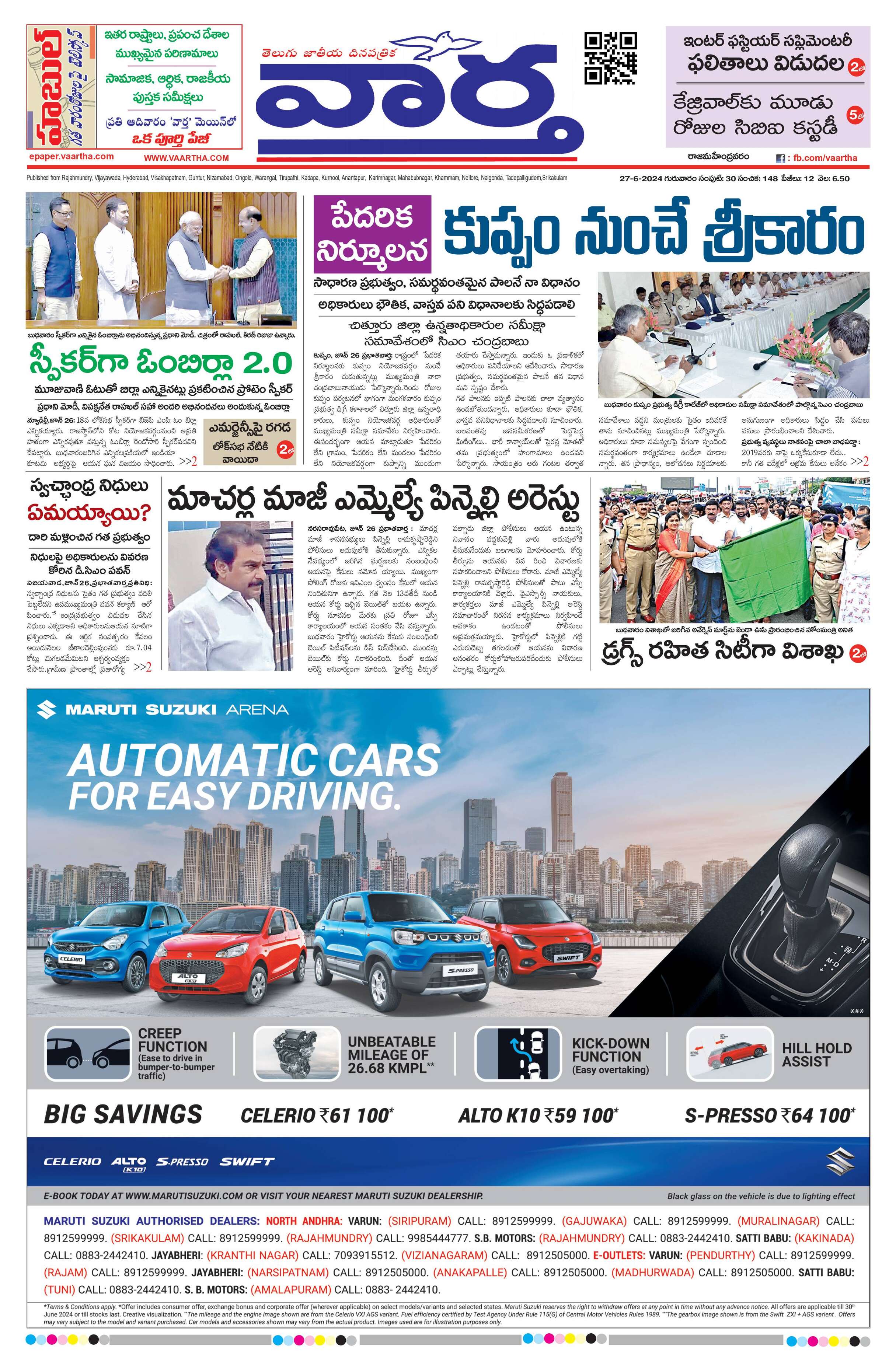 Rajamahendravaram main - 27 Jun 2024 - - Page 1