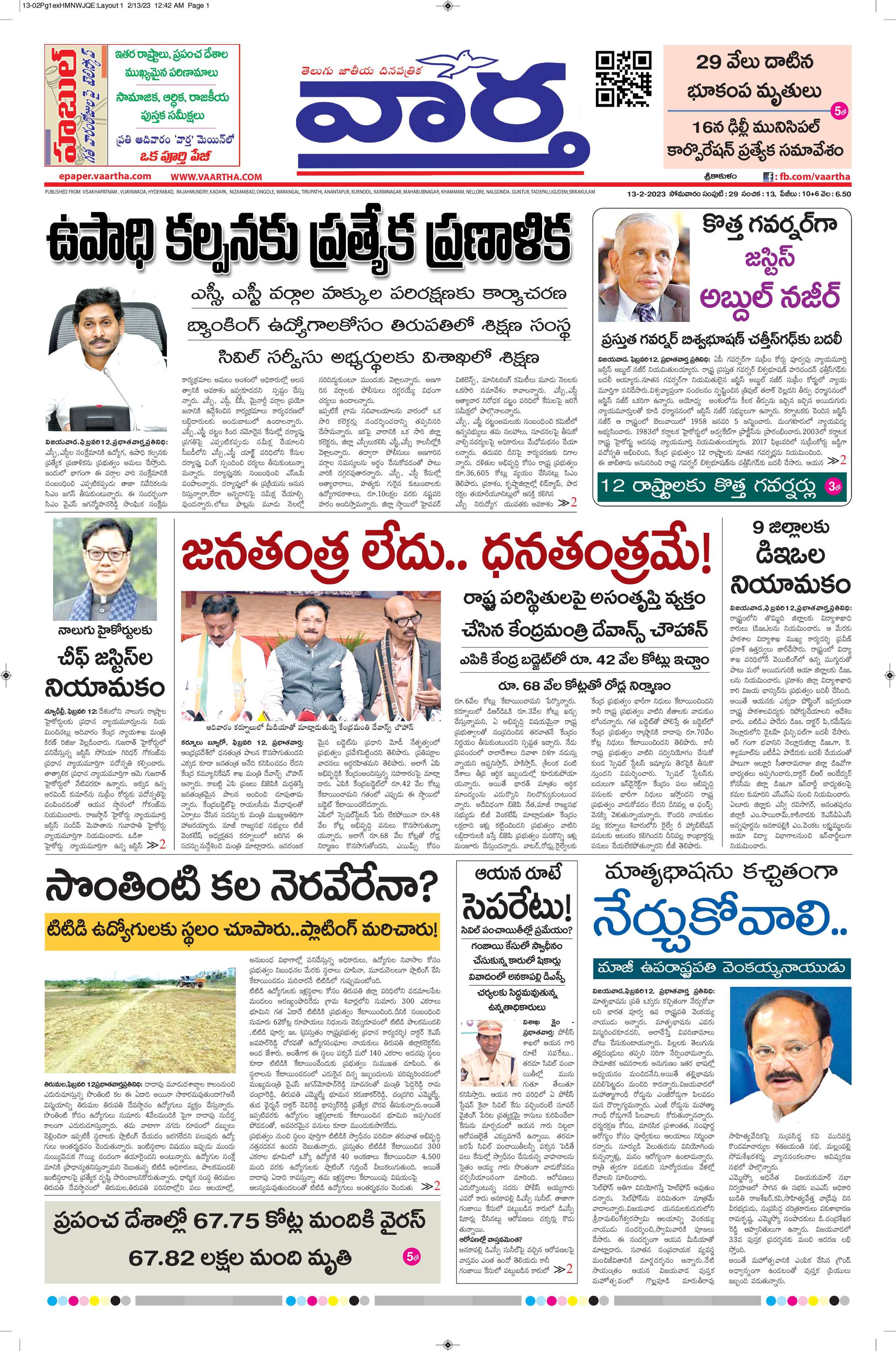 Srikakulam main - 13 Feb 2023 - - Page 1