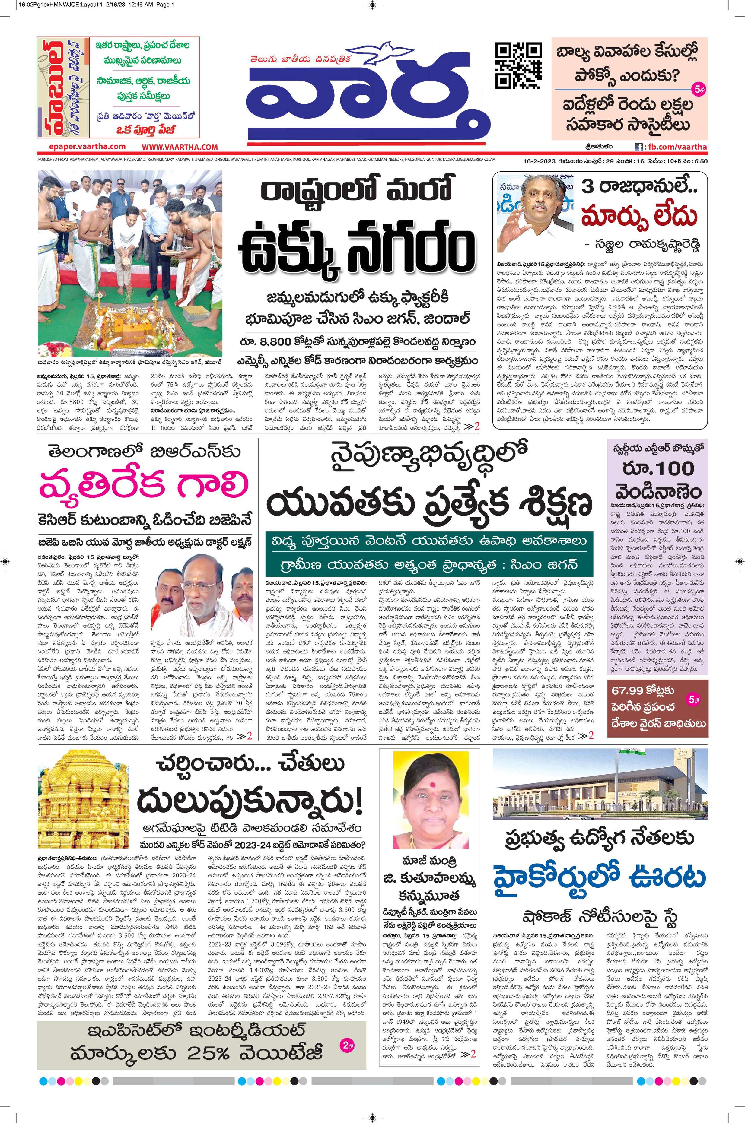 Srikakulam main - 16 Feb 2023 - - Page 1