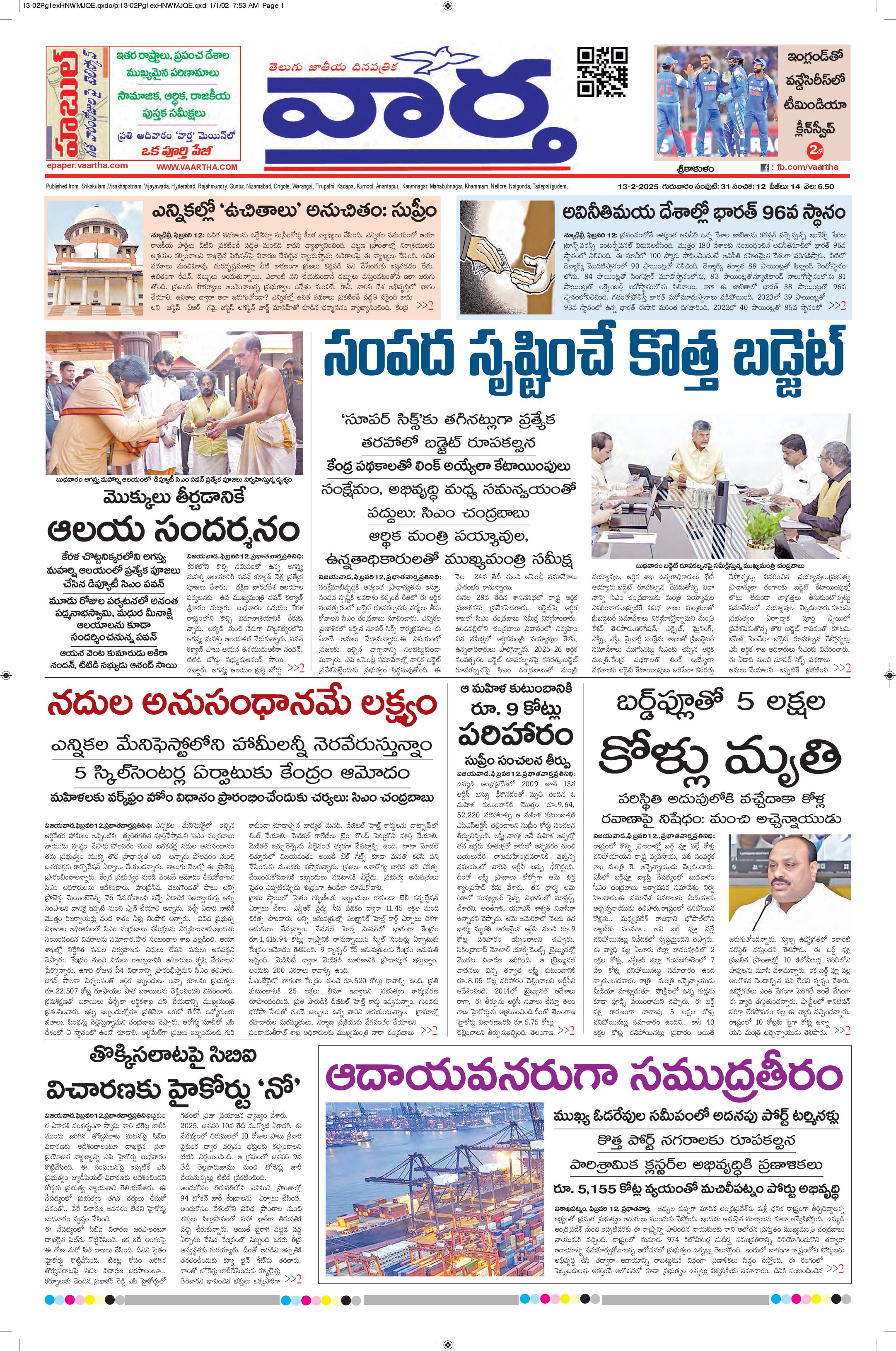 Srikakulam main - 13 Feb 2025 - - Page 1