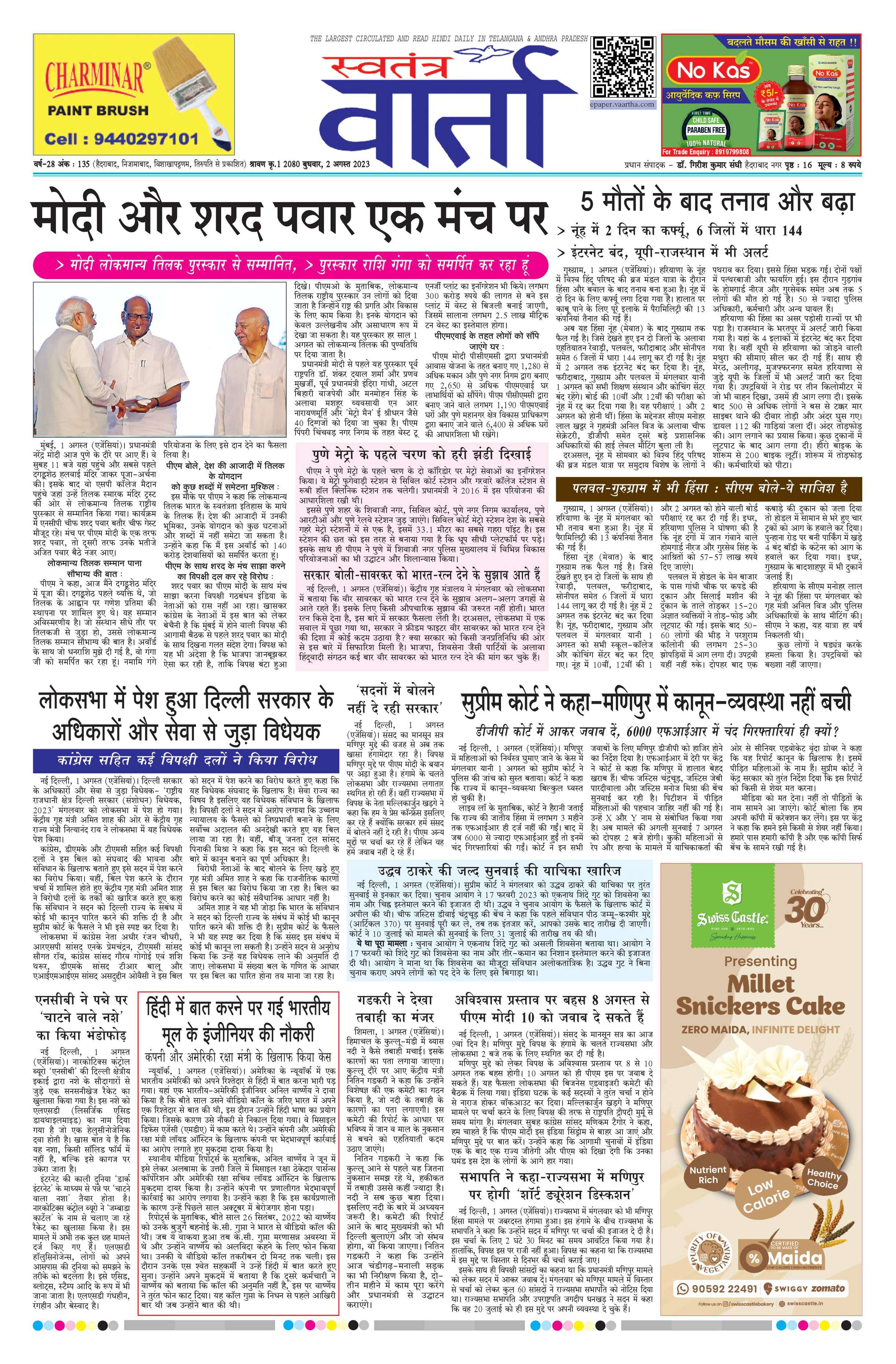 Swatantra Vaartha - 02 Aug 2023 - - Page 1