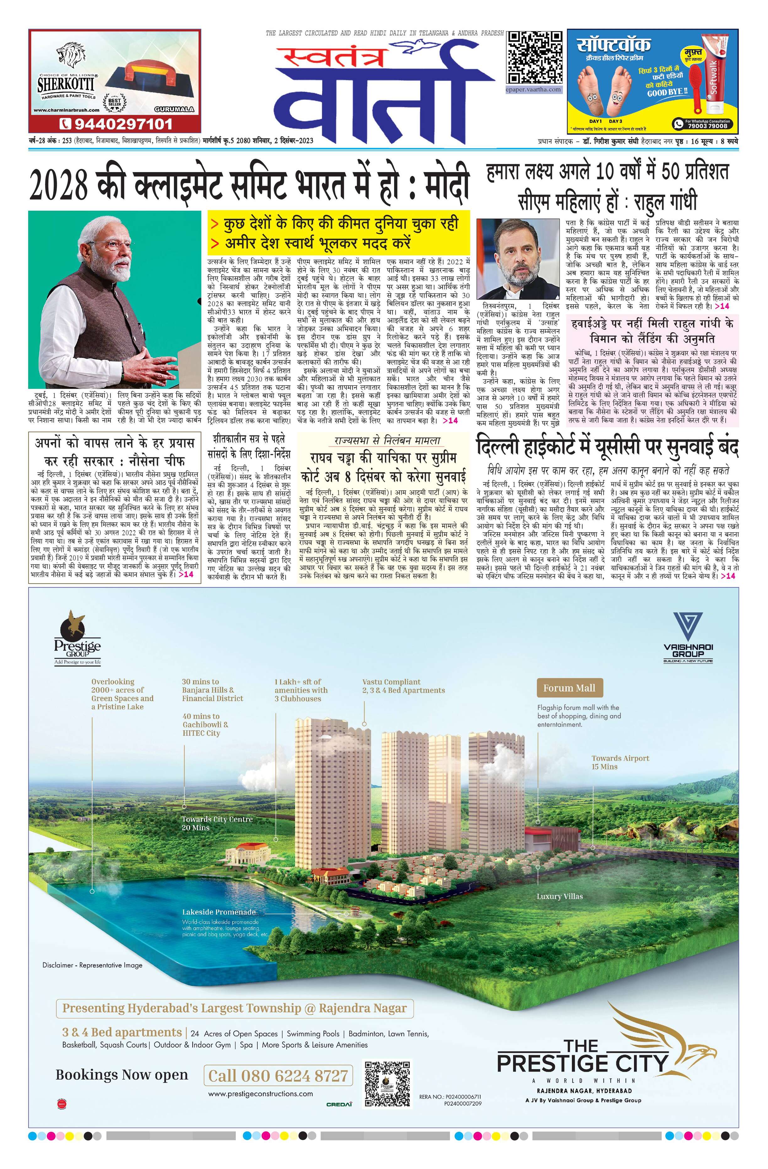 Swatantra Vaartha - 02 Dec 2023 - - Page 1