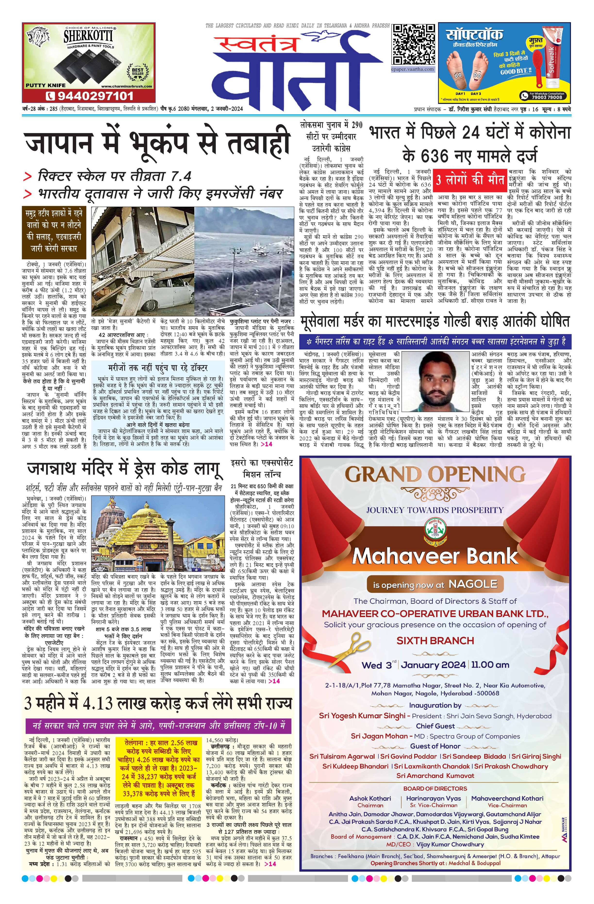 Swatantra Vaartha - 02 Jan 2024 - - Page 1