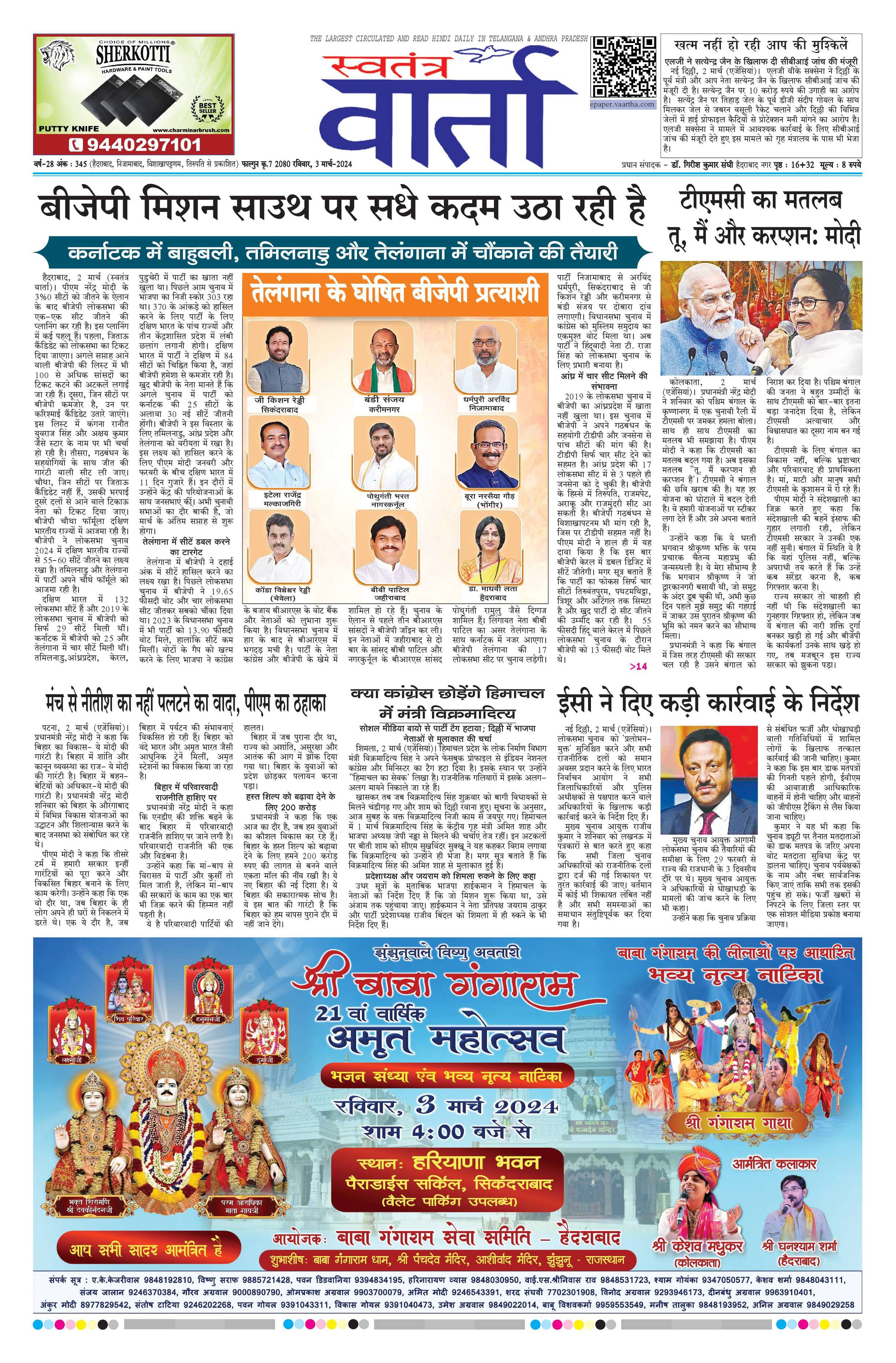 Swatantra Vaartha - 03 Mar 2024 - - Page 1