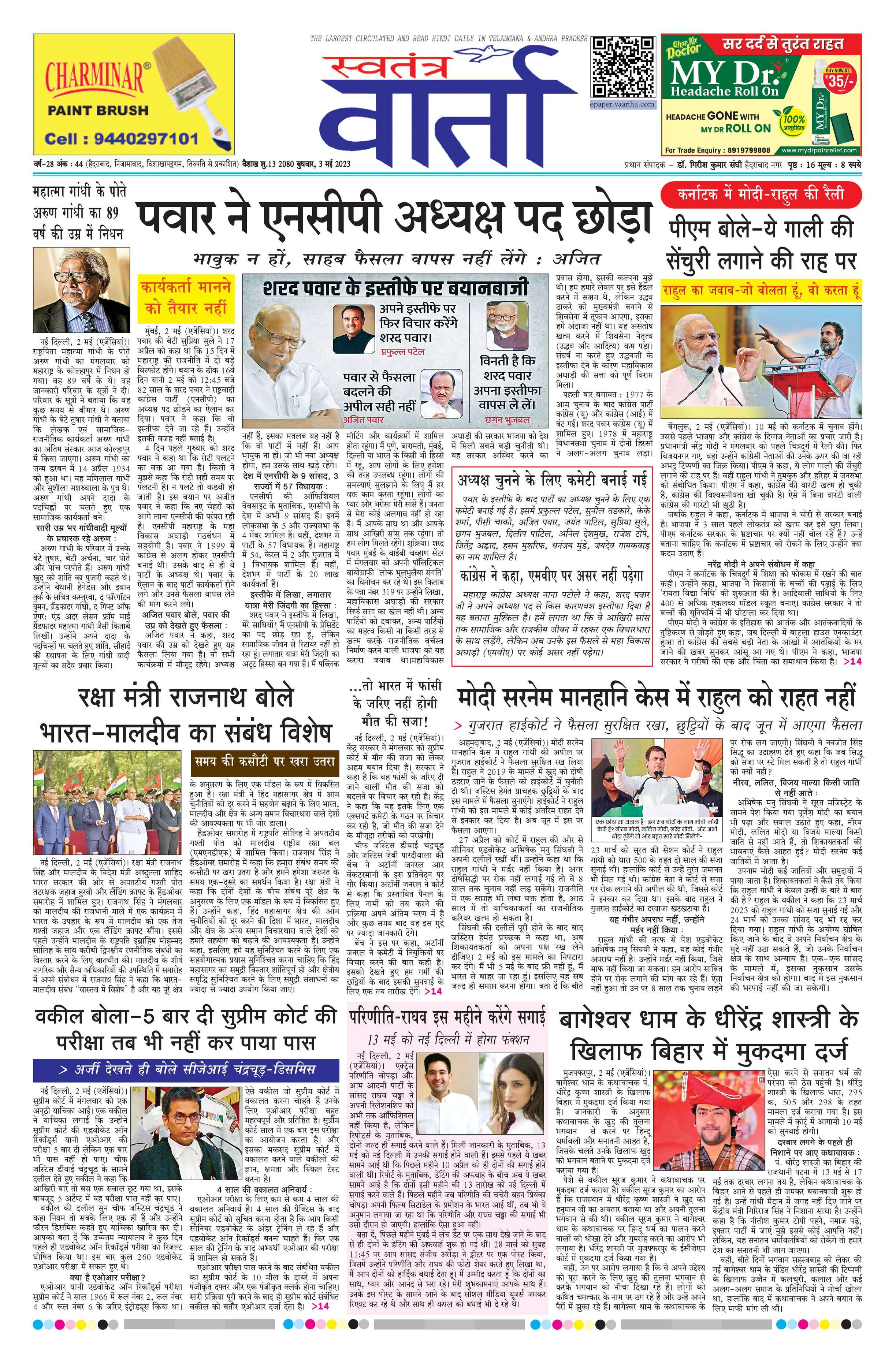 Swatantra Vaartha - 03 May 2023 - - Page 1