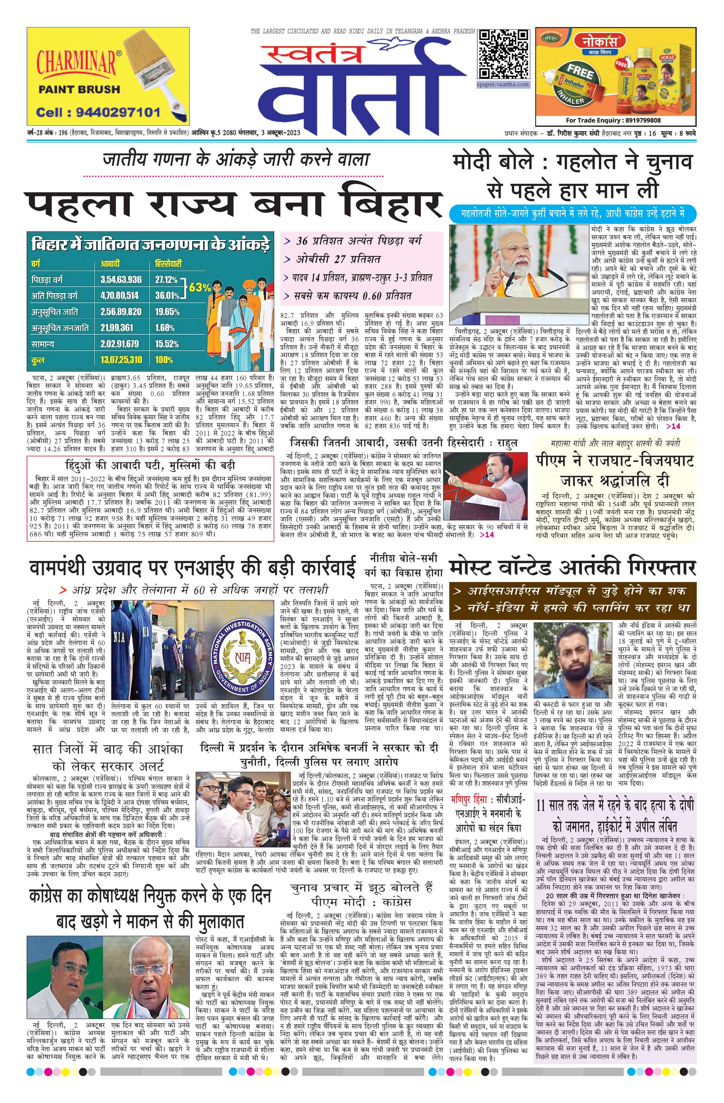 Swatantra Vaartha - 03 Oct 2023 - - Page 1