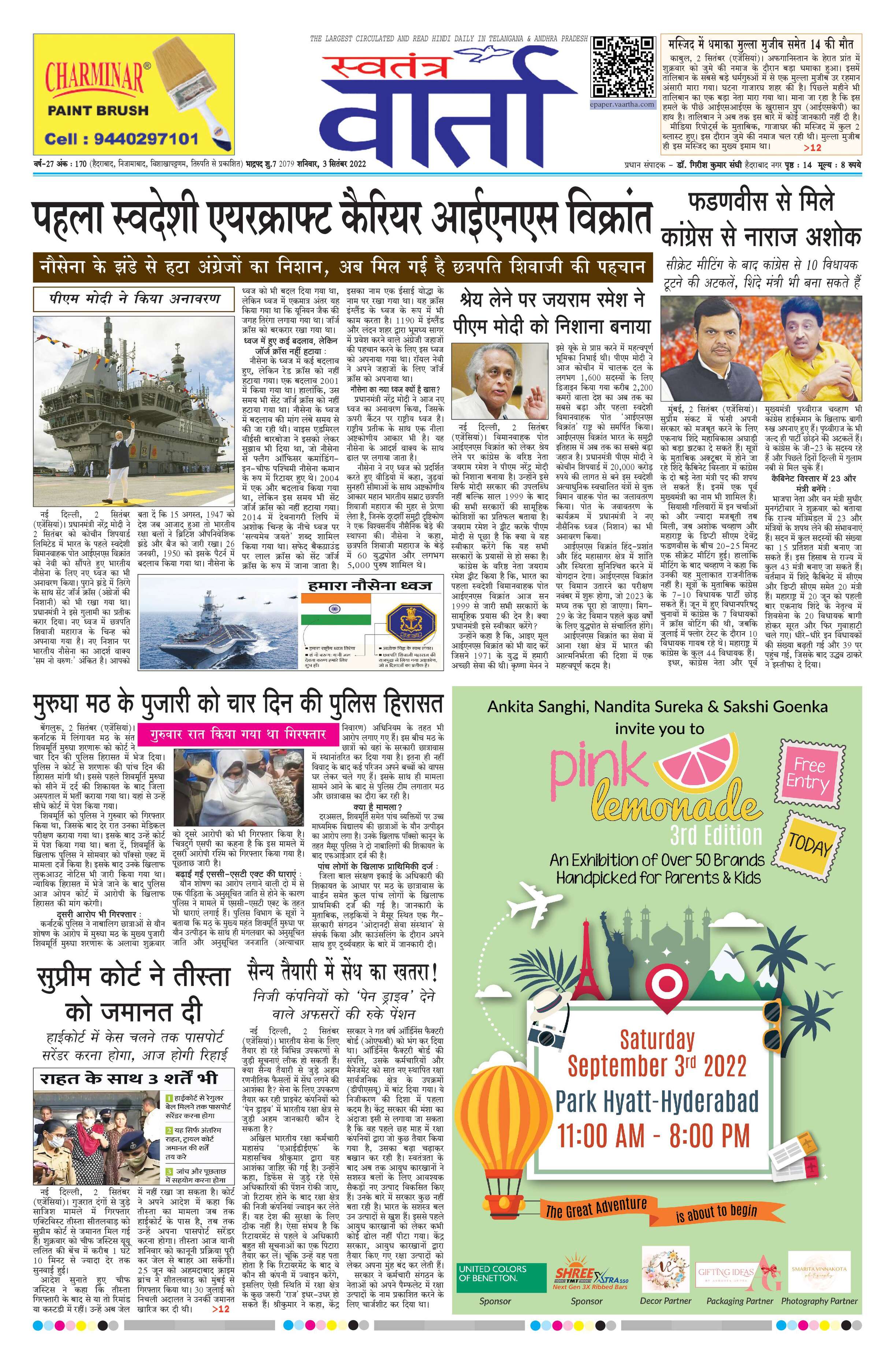 Swatantra Vaartha - 03 Sep 2022 - - Page 1