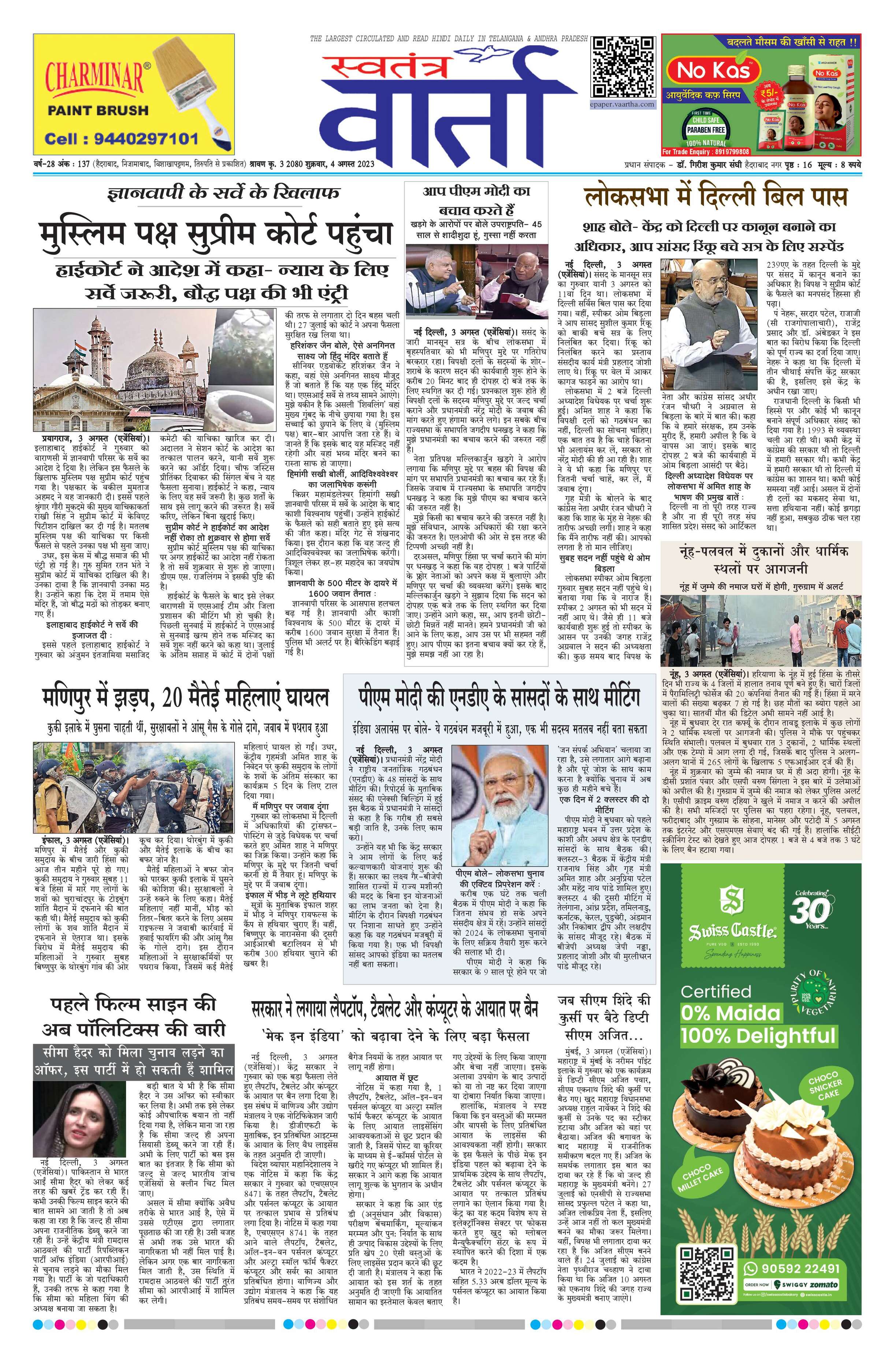 Swatantra Vaartha - 04 Aug 2023 - - Page 1
