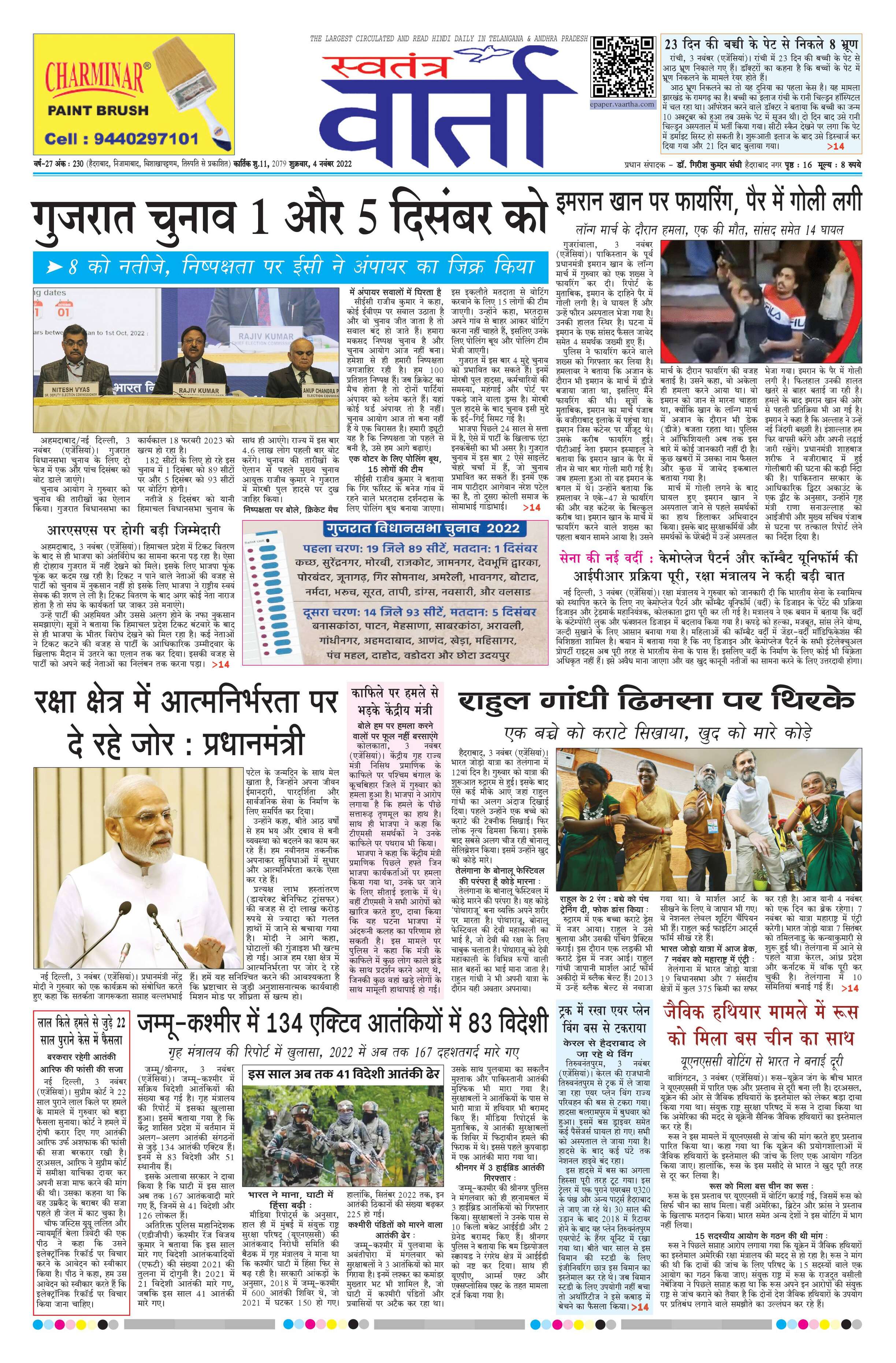 Swatantra Vaartha - 04 Nov 2022 - - Page 1
