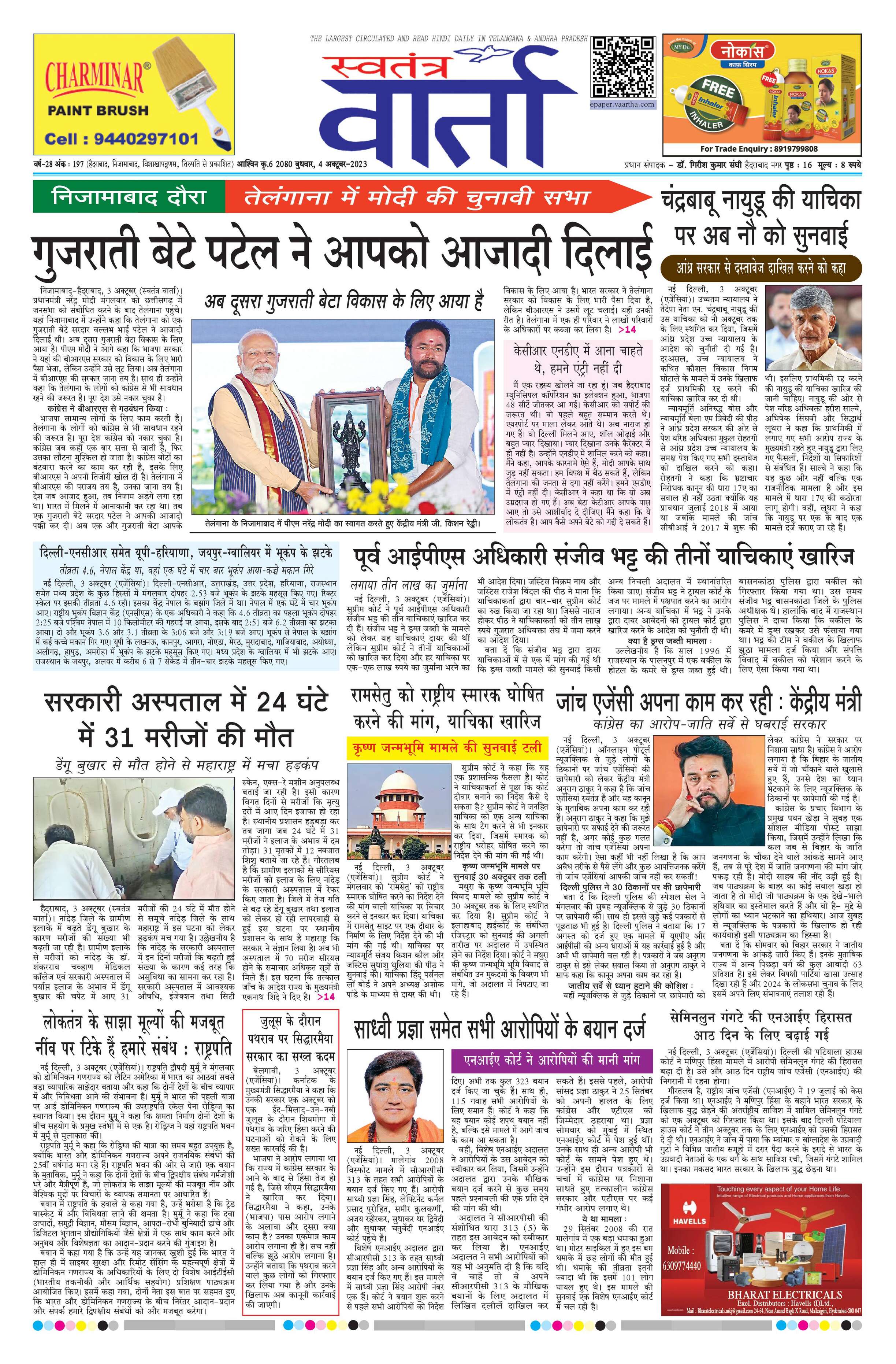 Swatantra Vaartha - 04 Oct 2023 - - Page 1
