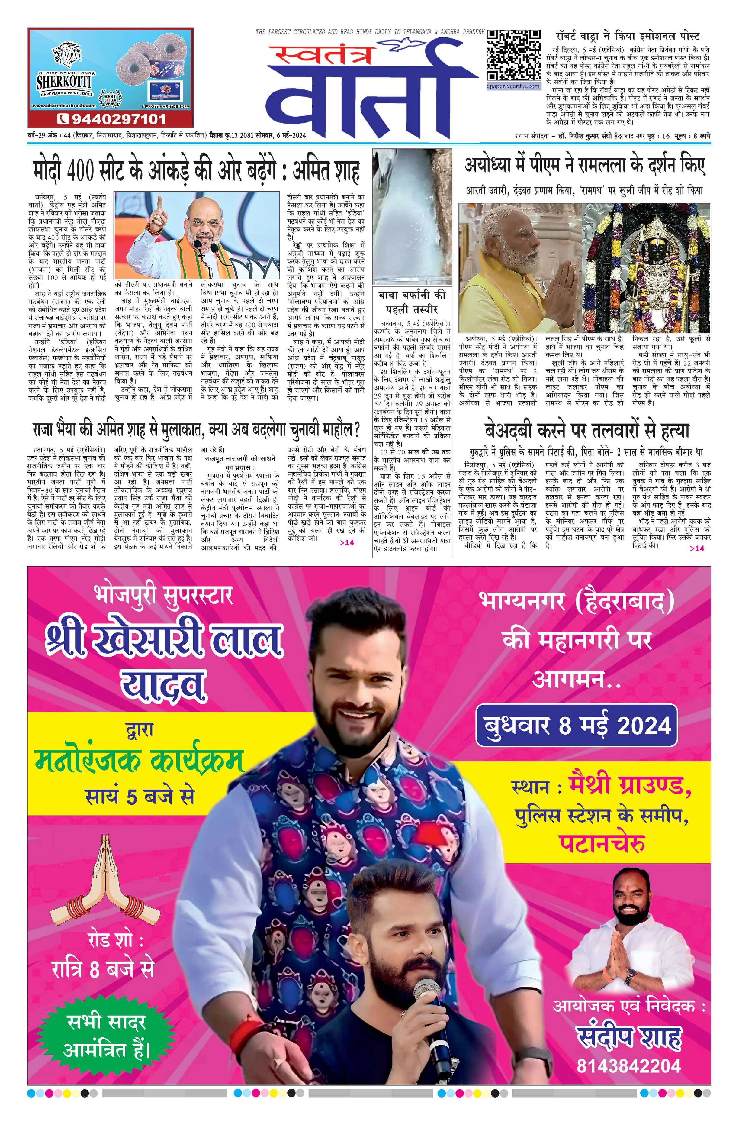 Swatantra Vaartha - 06 May 2024 - - Page 1