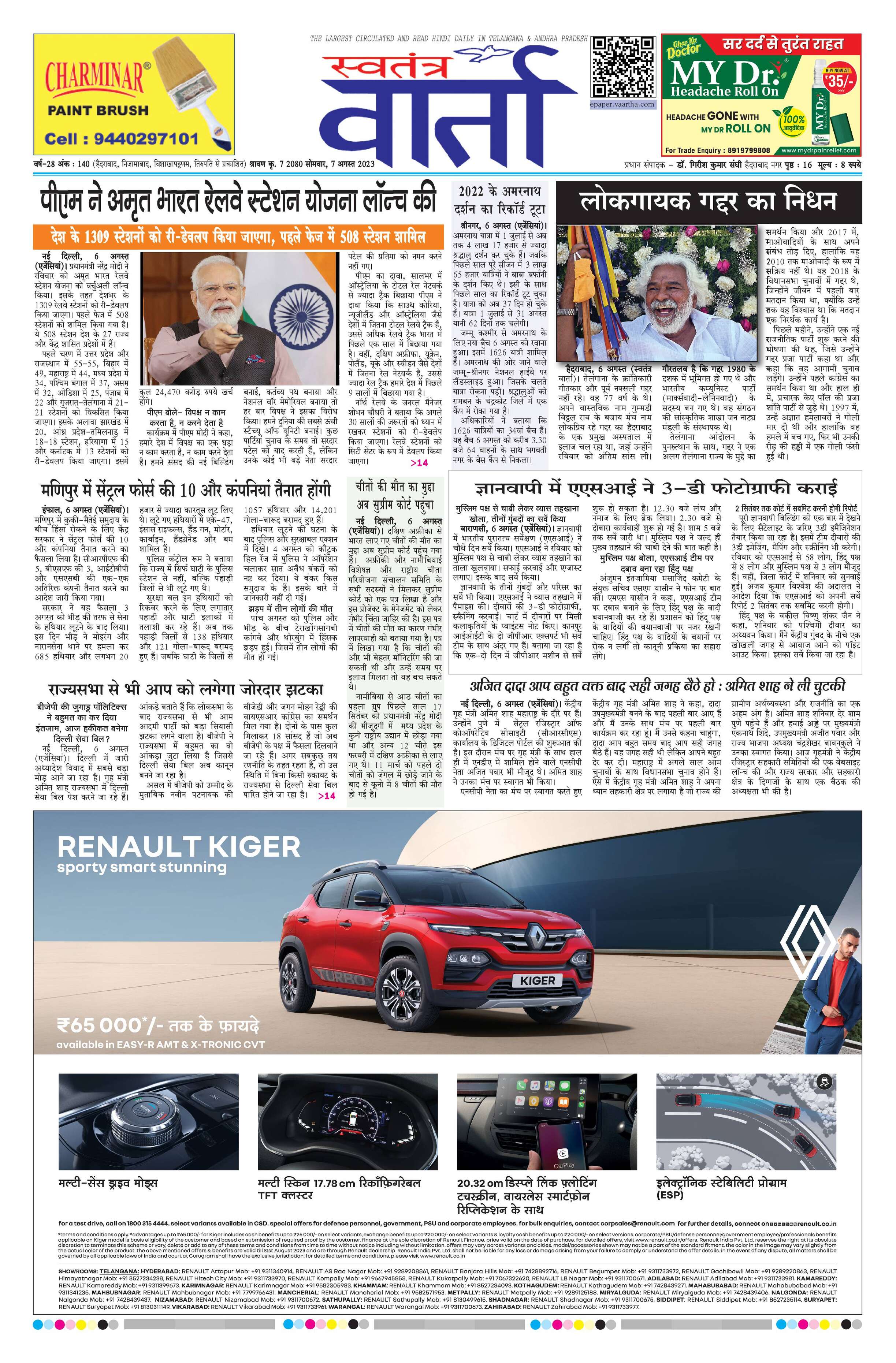 Swatantra Vaartha - 07 Aug 2023 - - Page 1