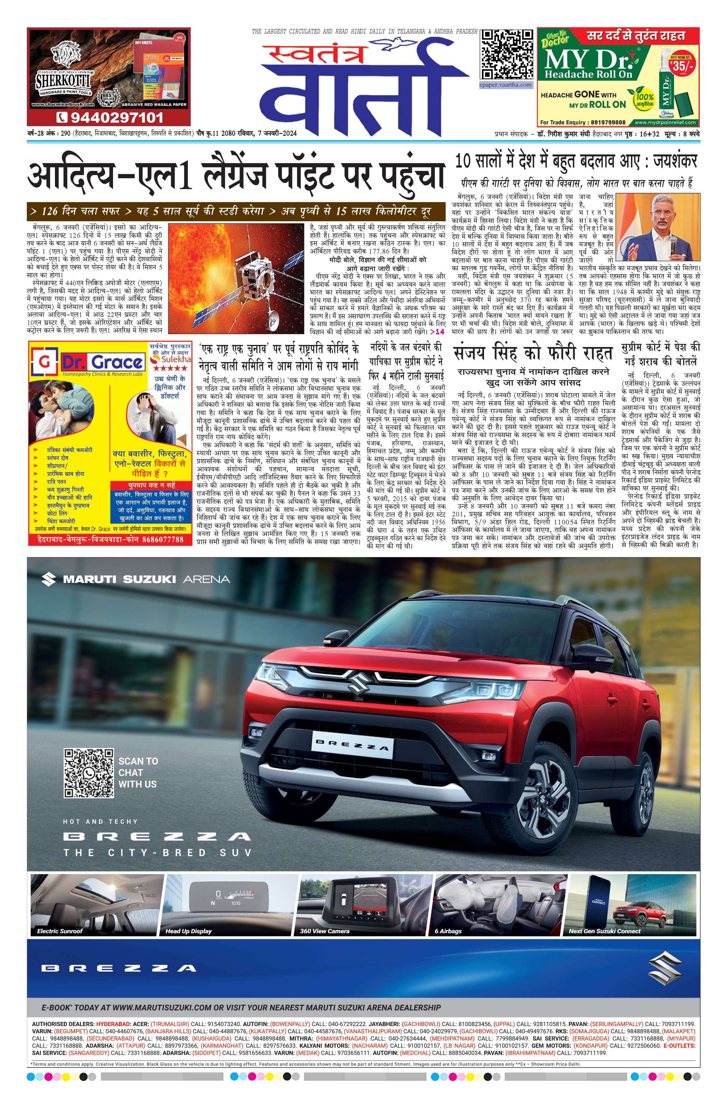 Swatantra Vaartha - 07 Jan 2024 - - Page 1