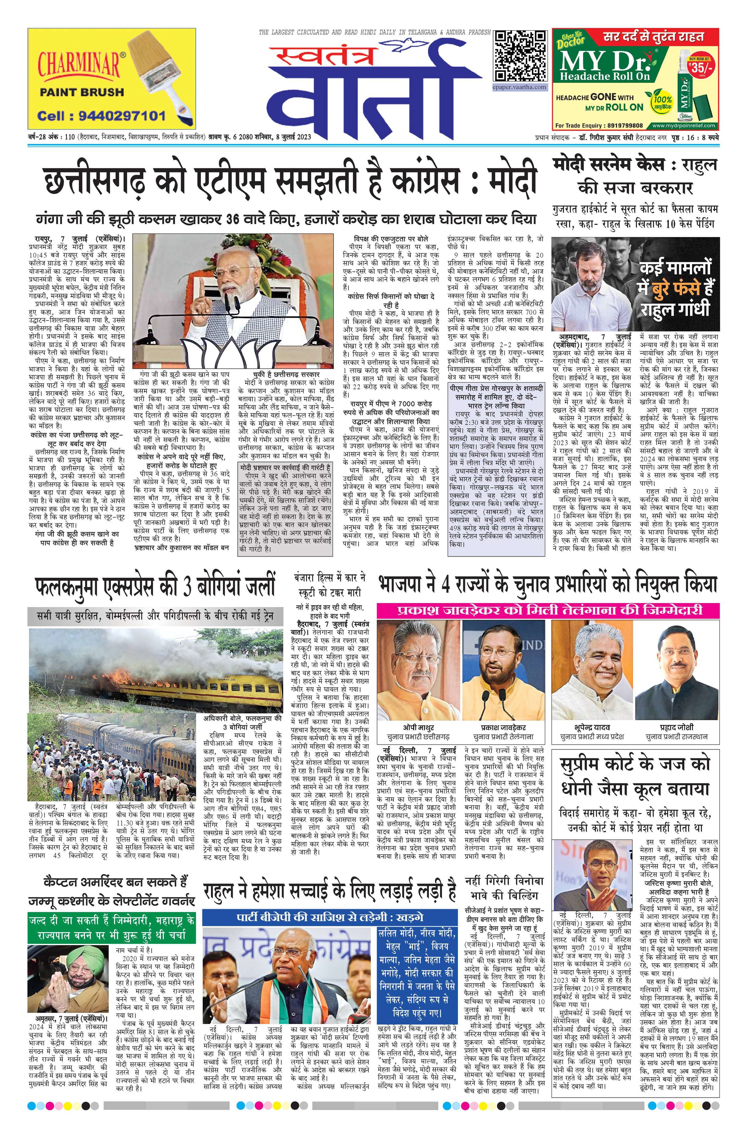 Swatantra Vaartha - 08 Jul 2023 - - Page 1
