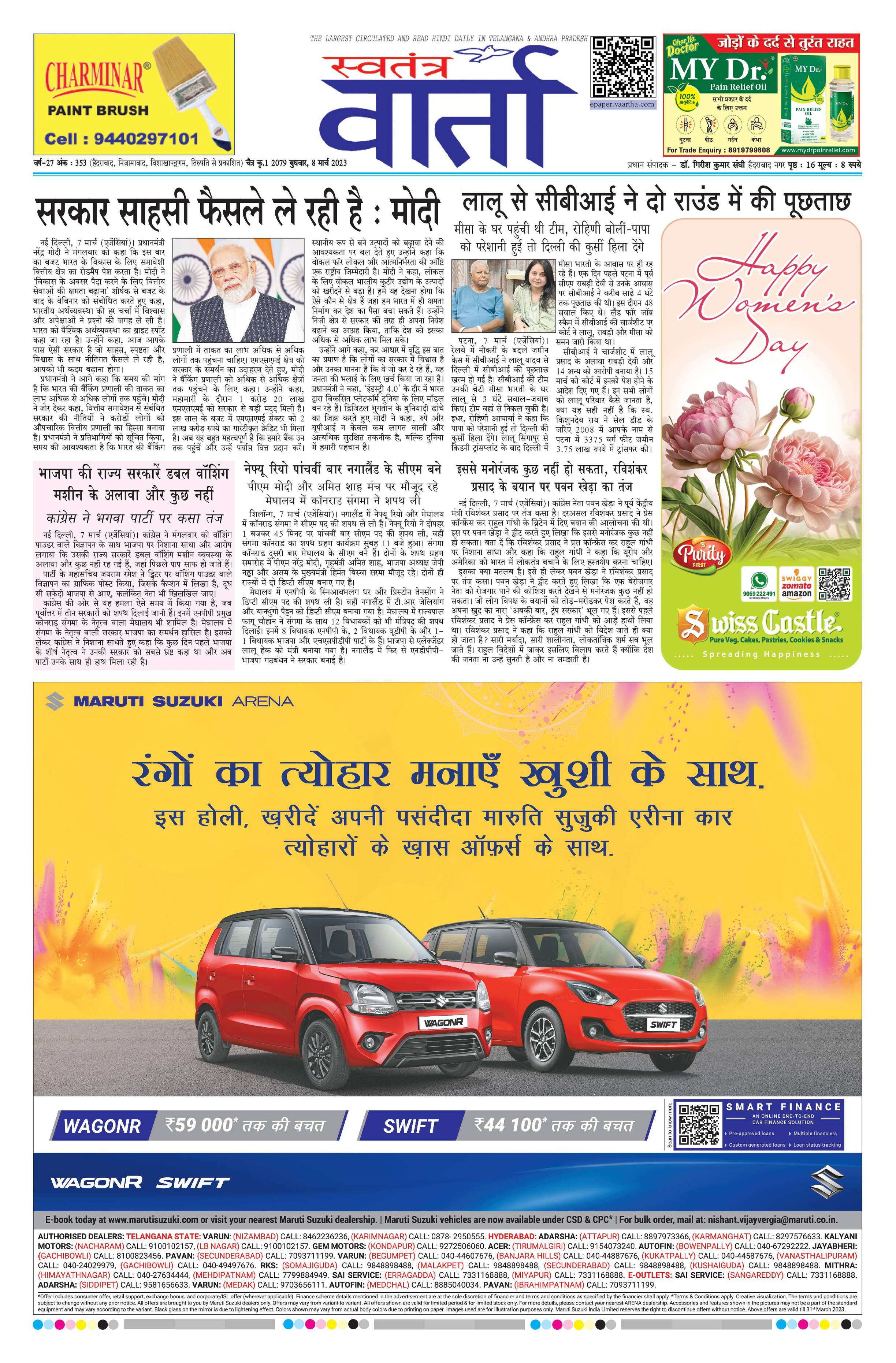 Swatantra Vaartha - 08 Mar 2023 - - Page 1