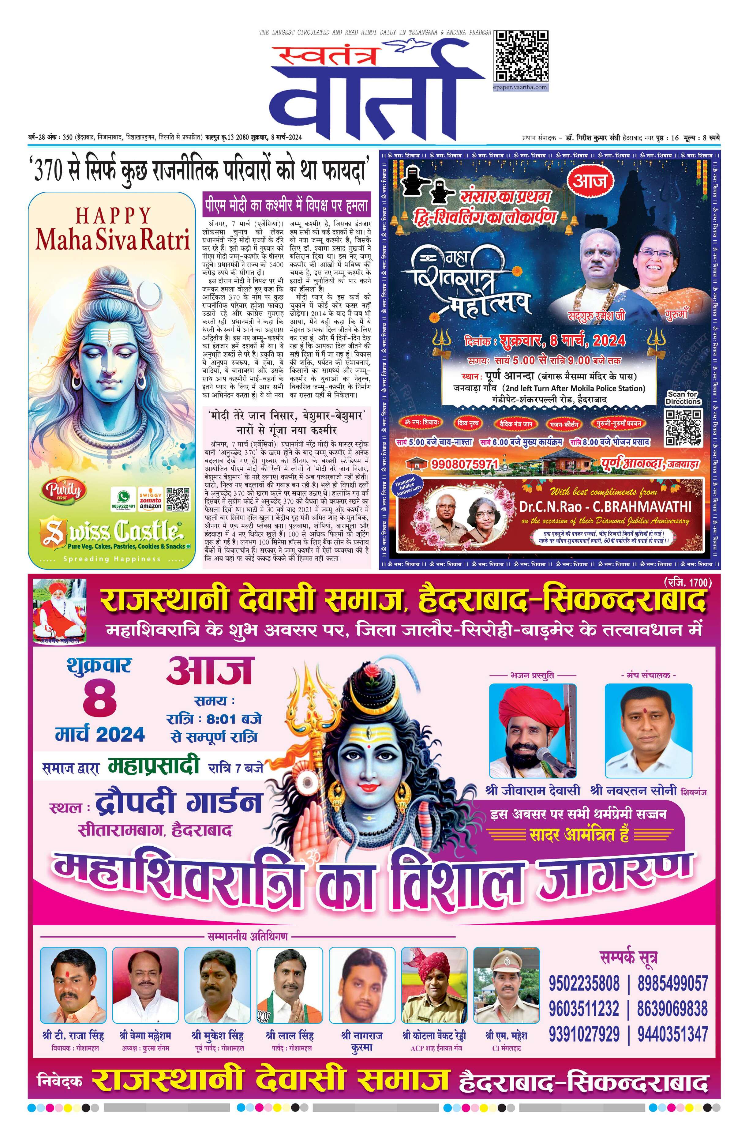 Swatantra Vaartha - 08 Mar 2024 - - Page 1