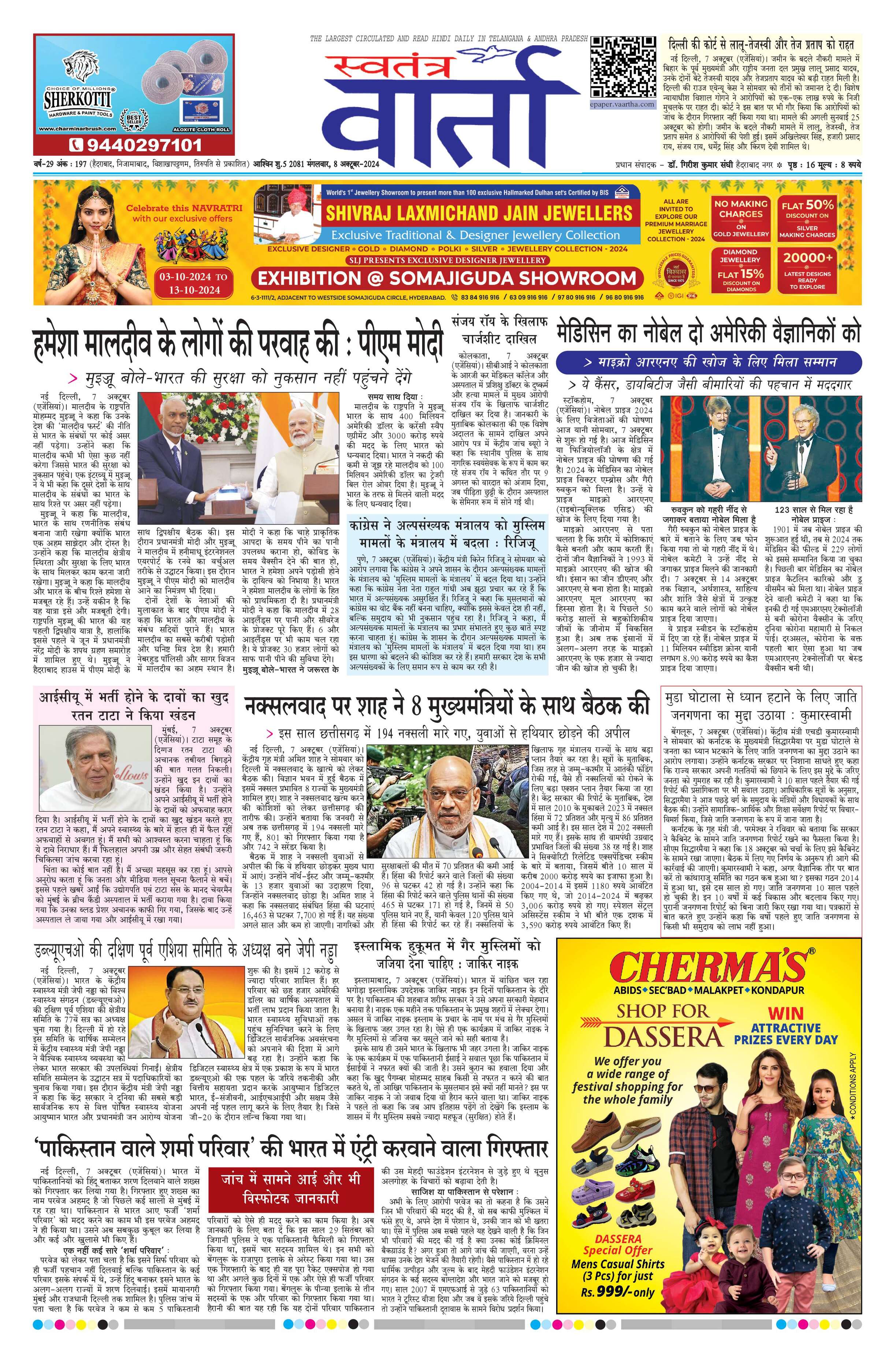 Swatantra Vaartha - 08 Oct 2024 - - Page 1