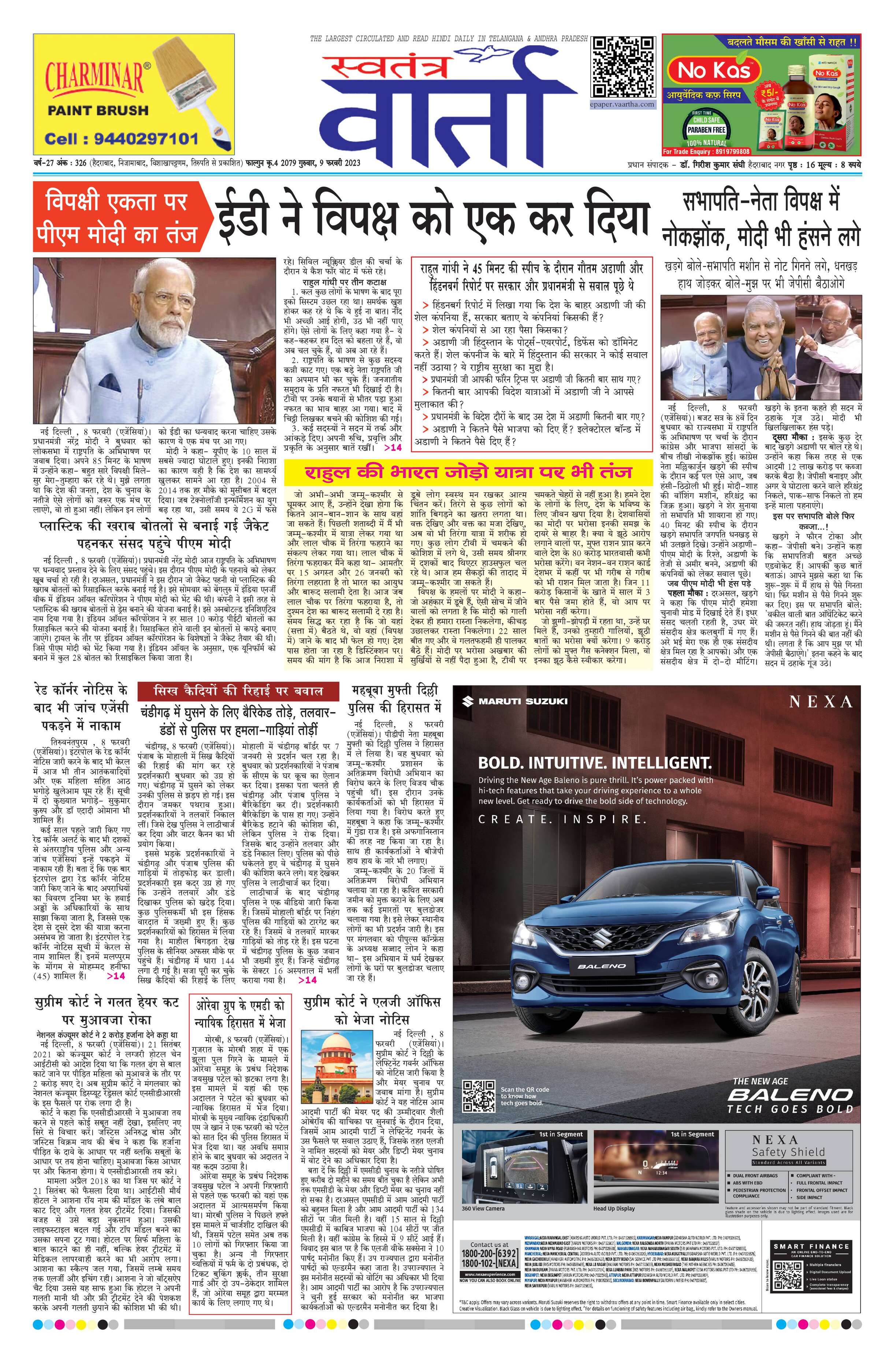 Swatantra Vaartha - 09 Feb 2023 - - Page 1